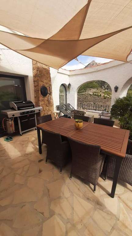 Casa doble de 2 plantas con 4 dormitorios y entrada independiente. ¡Disponible con licencia de B&B! La planta baja cuenta con un amplio salón con cocina abierta, un dormitorio, un baño con ducha y una acogedora terraza cubierta con preciosas vistas a Calpe. La planta baja cuenta con un acogedor salón con 3 dormitorios y 2 baños. La piscina de 8x4 metros y el jardín están muy bien cuidados. Jardín exótico maduro y completamente vallado. Bajo la casa hay un amplio trastero. ¡Completamente renovada en 2017! Aparcamiento exterior, varias plazas de aparcamiento y en una tranquila zona residencial.