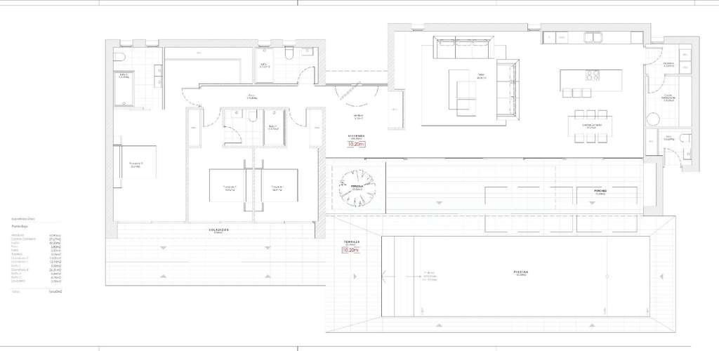 Diseñada para ser práctica y funcional, la villa se distribuye en una sola planta, lo que la hace ideal tanto para familias como para jubilados. La entrada da a un luminoso vestíbulo que se abre a un amplio salón-comedor de planta abierta con una moderna cocina con isla y un lavadero independiente. Grandes puertas correderas conectan el interior con un porche cubierto con barbacoa incorporada, una amplia terraza y una piscina privada de 52 m².
