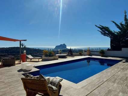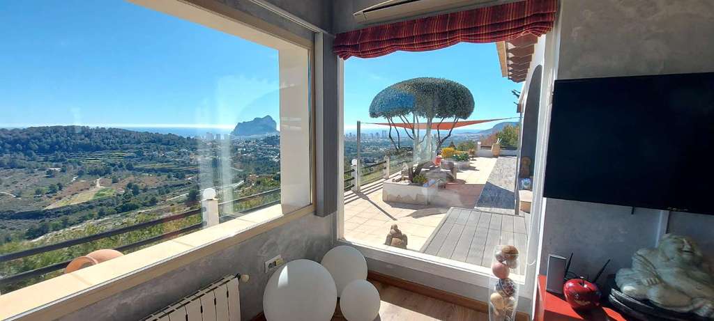 Villa en venta en Calpe situada en una zona residencial consolidada, a 5 Km del centro urbano de Calpe y de sus magníficas playas, todo tipo de comercios, servicios médicos y una amplia oferta de ocio y restauración.La villa se ha reformado totalmente con mezcla de estilo moderno con estilo mediterráneo y disfruta de unas magníficas e increíbles vistas panorámicas al mar, al Peñón de Ifach y a todo Calpe. Muy, muy luminosa (orientación Sur) y muchísima privacidad-La villa se ha construido en una amplia parcela de 2.100 m2 y tiene una superficie construida de 184 m2. Distribuida en 2 plantas:- En la planta principal tenemos el porche y un amplio vestíbulo de entrada, dormitorio principal con baño en-suite y amplios armarios, trastero-despensa, amplio salón-comedor-cocina (65 m2) y porche que se fusiona con la impresionante terraza exterior de 216 m2 con piscina rectangular de 8x4 metros, un porche de madera con zona de chill-out y relax, ducha exterior, aseo, cocina de verano y barbacoa, lavadero-sala de máquinas y un trastero que también hace funciones de cuarto dormitorio auxiliar. Se accede a la planta alta a través de una escalera interior.- En la planta superior tenemos el pasillo, 2 amplios y luminosos dormitorios y 1 baño con plato ducha.La villa ha sido recientemente renovada en su totalidad y destaca por sus vistas, por su luz, por su tranquilidad y privacidad y por sus magníficas zonas exteriores.Está equipada con calefacción central (sistema aerotermia de bomba de calor que ofrece la mayor eficiencia y mejor rendimiento) y con aire acondicionado. También dispone de amplia zona de aparcamiento exterior para 2 vehículos (cubierta tipo vela) ubicada estratégicamente junto a la entrada principal. El jardín de bajo mantenimiento, con muchas plantas, cascada en la zona de la piscina y terraza chill-out para disfrutar de los más de 300 días de sol al año que le ofrece Calpe.Le invitamos a conocer esta magnífica villa. No le defraudará.