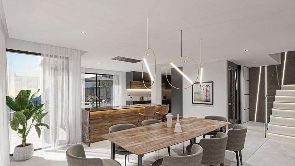 Ubicadas en la encantadora localidad de Calpe, estas exclusivas villas ofrecen una experiencia de vida inigualable. Con solo tres propiedades disponibles, cada villa ha sido diseñada para maximizar el confort y la elegancia. La ubicación privilegiada permite disfrutar de impresionantes vistas al mar, creando un ambiente sereno y relajante. La proximidad al mar, a tan solo 1,7 km, facilita el acceso a las playas y al vibrante entorno costero, ideal para quienes buscan un estilo de vida mediterráneo. Estas villas son perfectas para familias que valoran la privacidad y el lujo en un entorno natural incomparable.EXTERIORESLos exteriores de estas villas en Calpe están diseñados para ofrecer el máximo disfrute del clima mediterráneo. Cada propiedad cuenta con un jardín privado, ideal para momentos de relajación al aire libre. Las terrazas amplias permiten disfrutar de las vistas al mar y son perfectas para cenas al aire libre o simplemente para relajarse al final del día. Además, cada villa incluye una piscina privada, proporcionando un oasis personal para refrescarse durante los cálidos días de verano. La presencia de una pérgola añade un toque de elegancia y funcionalidad, ofreciendo sombra y un espacio adicional para el entretenimiento al aire libre.INTERIORESEl interior de estas villas en Calpe está diseñado con un enfoque en el lujo y la comodidad. Cada villa dispone de cuatro dormitorios y cinco baños, asegurando espacio y privacidad para toda la familia. Los acabados incluyen suelos de cerámica de alta calidad, que aportan un toque moderno y elegante. Las villas están equipadas con aire acondicionado y calefacción por suelo radiante, garantizando un ambiente confortable durante todo el año. Los armarios empotrados ofrecen un almacenamiento eficiente, mientras que la domótica y el videoportero añaden un nivel adicional de seguridad y conveniencia. La inclusión de electrodomésticos modernos completa la oferta, asegurando que cada hogar esté listo para ser disfrutado desde el primer día.CALPECalpe, en la Costa Blanca, es un destino turístico emblemático que combina sus playas de arena fina con su imponente Peñón de Ifach, un símbolo natural que destaca en el horizonte. Sus aguas cristalinas y su entorno montañoso ofrecen un equilibrio entre naturaleza y actividades playeras. El turismo en Calpe se centra en sus playas, como la Playa de la Fossa o la Cala del Morelló, y en el senderismo hasta la cima del Peñón de Ifach para disfrutar de vistas panorámicas. El estilo de vida en Calpe es dinámico y cosmopolita. Los residentes y turistas disfrutan de una vida activa con una amplia oferta de restaurantes, bares y actividades al aire libre. La gastronomía local destaca por los platos de pescado fresco y mariscos, disponibles en sus numerosos restaurantes junto al mar. Calpe ofrece una combinación perfecta entre turismo costero, naturaleza y una vibrante vida urbana.