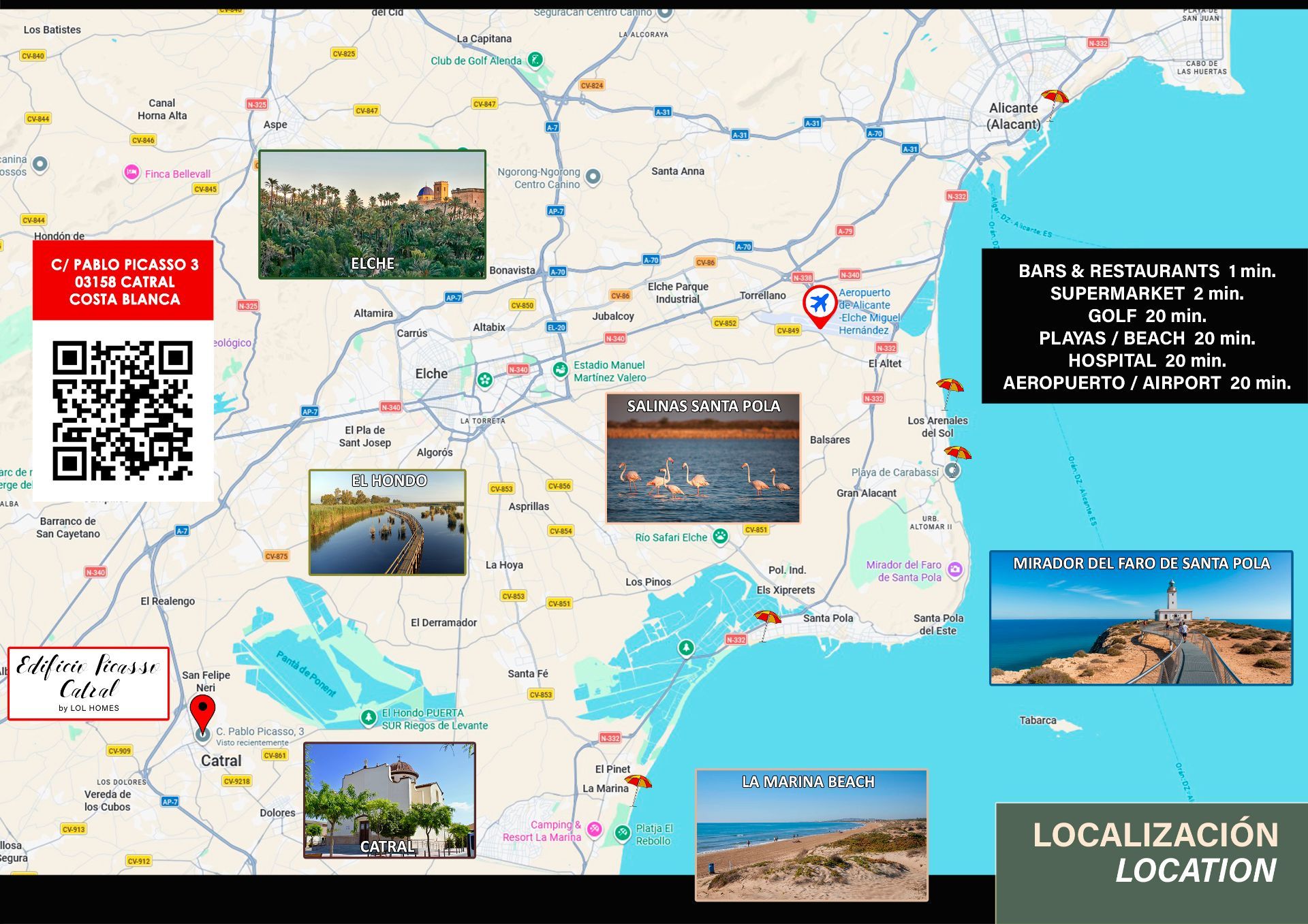 Con la mejor ubicación y comunicaciones del área: a tan sólo 20 minutos del aeropuerto de Alicante, playas de la Costa Blanca, campos de golf..