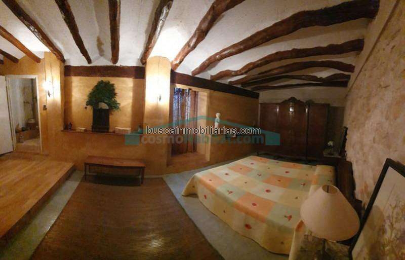 La planta baja, destinada originalmente a la familia que cuidaba la propiedad, dispone de salón-estar, comedor-cocina, tres dormitorios y un aseo, ocupando aproximadamente 340 m2 y con un patio trasero que conecta con el entorno exterior. La planta alta, de acceso independiente mediante escalera desde la planta baja, incluye un amplio salón-comedor con chimenea, cocina equipada, cuatro dormitorios, baño completo y dos terrazas, una delantera con mirador tipo torreta y otra trasera con vistas panorámicas. Además, la planta baja cuenta con un anexo que puede emplearse como taller o trastero.