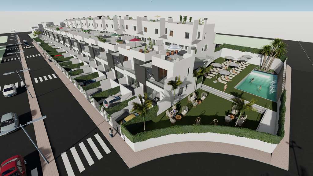 Ubicado en la encantadora localidad de Cox, este conjunto de adosados ofrece una oportunidad única para quienes buscan un hogar en un entorno tranquilo y bien comunicado. Con un total de 6 propiedades, cada adosado está diseñado para ofrecer confort y funcionalidad. La proximidad al aeropuerto, a tan solo 40 km, facilita los desplazamientos y conecta con facilidad a los residentes con destinos nacionales e internacionales. Este enclave es ideal para quienes desean disfrutar de la vida en un entorno apacible sin renunciar a la cercanía de servicios y conexiones de transporte.EXTERIORESLos adosados en Cox destacan por sus espacios exteriores bien aprovechados. Cada vivienda cuenta con un jardín privado, perfecto para disfrutar del aire libre y crear un espacio personal de ocio. Además, las terrazas ofrecen un lugar ideal para relajarse y disfrutar del clima mediterráneo. Para aquellos que buscan un espacio adicional al aire libre, el solárium es una característica destacada, proporcionando un área versátil para el descanso o el entretenimiento. Estos espacios exteriores están diseñados para maximizar el disfrute del entorno natural y ofrecer un estilo de vida al aire libre.INTERIORESEl interior de los adosados está pensado para ofrecer comodidad y modernidad. Con tres dormitorios y dos baños, cada vivienda está equipada para satisfacer las necesidades de familias o parejas que buscan espacio y funcionalidad. Los suelos de gres porcelánico aportan un toque de elegancia y son fáciles de mantener. Las persianas eléctricas y los electrodomésticos incluidos facilitan la vida diaria, mientras que los armarios empotrados ofrecen soluciones de almacenamiento prácticas. La preinstalación de aire acondicionado asegura que el hogar esté preparado para mantener una temperatura agradable durante todo el año.ZONAS COMUNESLas zonas comunes de este residencial en Cox están diseñadas para fomentar el bienestar y la convivencia entre los residentes. Los jardines comunitarios ofrecen un espacio verde donde relajarse y disfrutar del entorno natural. La piscina comunitaria es un atractivo adicional, proporcionando un lugar para refrescarse y socializar durante los meses más cálidos. Estas áreas comunes están pensadas para complementar los espacios privados de cada adosado, ofreciendo a los residentes un equilibrio perfecto entre privacidad y comunidad.