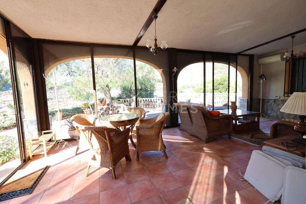 ¿Buscas una casa de campo en Crevillente? Esta propiedad, situada a los pies de la montaña en Crevillente, Alicante, ofrece un entorno natural único. La casa de campo cuenta con una amplia parcela de 6.800 m², orientación sur y gran exposición solar. El terreno está plantado con diversos árboles, ideal para disfrutar de la naturaleza en plena privacidad.~~La vivienda, de una sola planta y con 119 m² construidos, incluye 5 dormitorios y 2 baños completos, ideal para una familia grande o para quienes buscan espacio adicional. La cocina independiente es amplia, perfecta para los amantes de la cocina. La casa dispone de dos terrazas acristaladas y un salón comedor con chimenea, creando un ambiente cálido y acogedor.~~Esta casa de campo en Crevillente destaca por su piscina de 8x3 metros, con vistas panorámicas a las montañas, ofreciendo un espacio ideal para relajarse y disfrutar del paisaje. La propiedad también incluye un trastero, aire acondicionado y se vende completamente amueblada, lista para mudarse.~~Si buscas una casa rural en venta en Crevillente con amplias zonas exteriores, naturaleza y tranquilidad, esta propiedad es una excelente opción. Aprovecha esta oportunidad de adquirir una vivienda con todas las comodidades en un entorno natural y disfruta del clima soleado de Alicante.~~