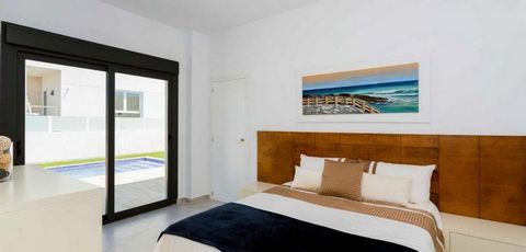 Villas de nueva construcción en una sola planta en la parte nueva de Daya Nueva. A pocos minutos andando del centro del pueblo. La propiedad consta de 3 dormitorios, 2 baños y una piscina privada de 18m2. Salón / comedor con techo de doble altura, cocina abierta, luz natural y opción para solarium con un coste extra. El dormitorio principal tiene opción de walk in closet y baño en suite.