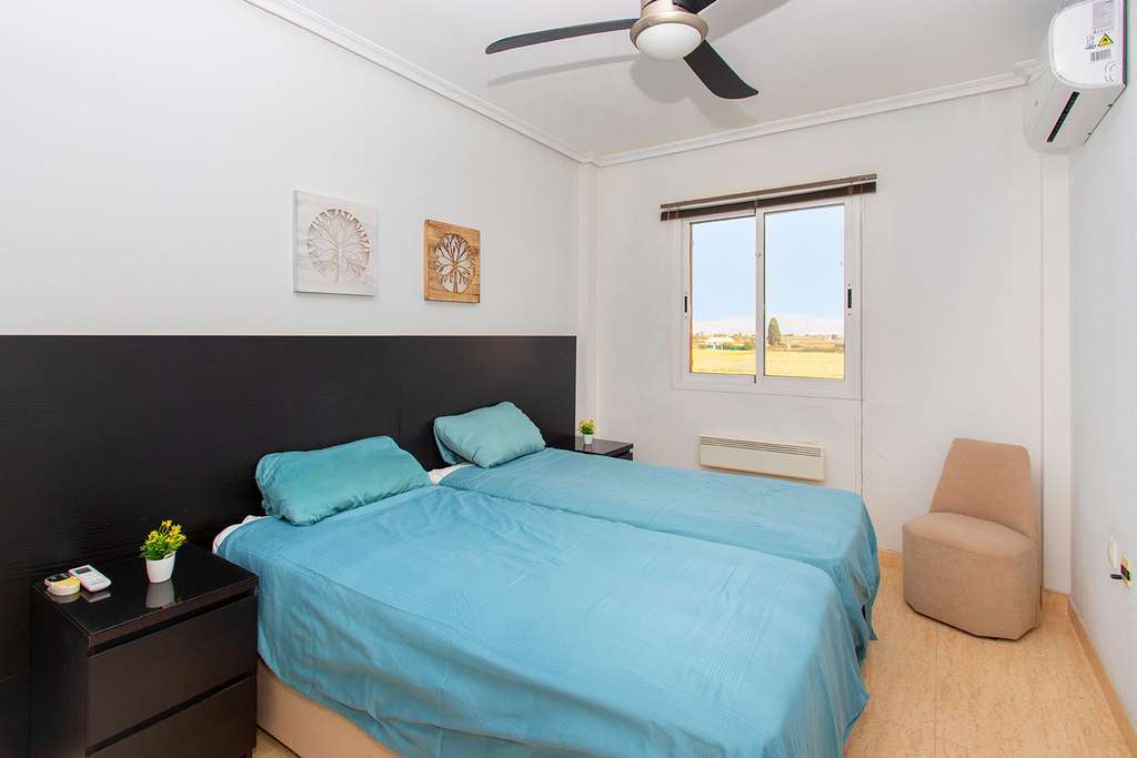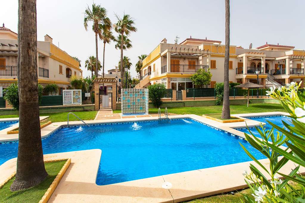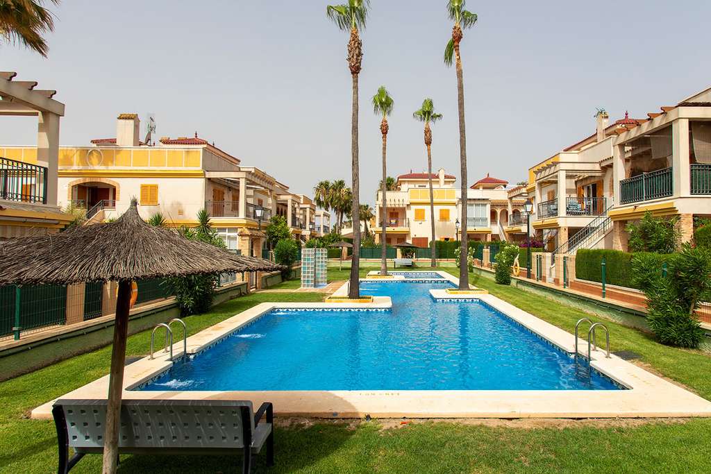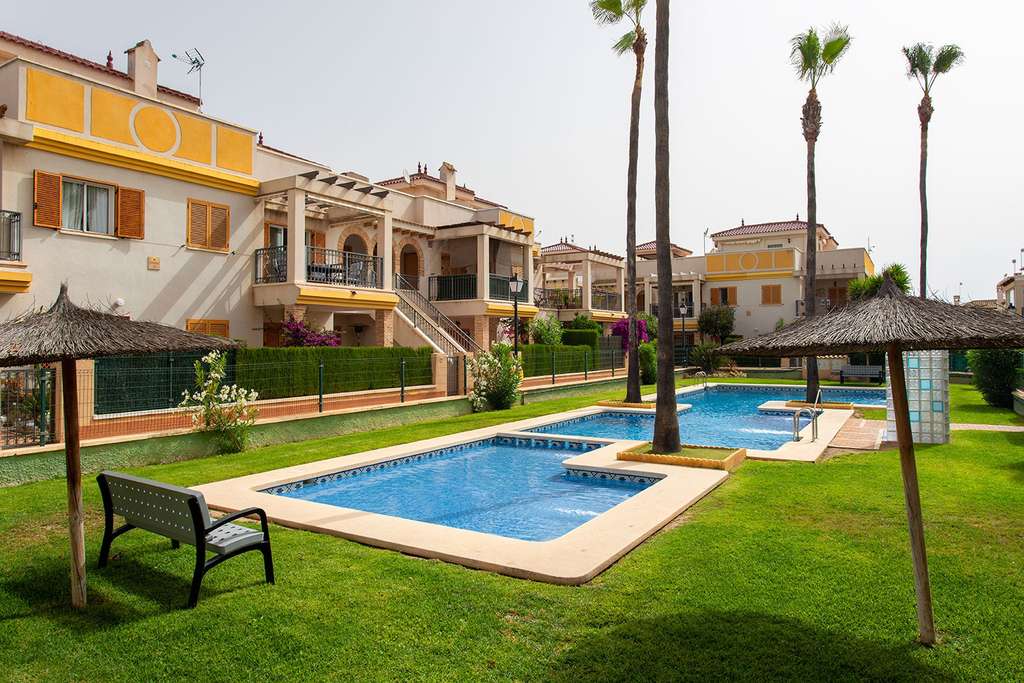 La residencia cuenta con un jardín comunitario bien cuidado y una impresionante piscina. Para sus necesidades de compras más grandes, los principales supermercados como Consum y Mercadona están a solo 3 km en Benijofar, que también cuenta con excelentes opciones para comer.