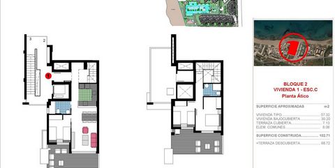 Apartamentos y áticos de dos y tres dormitorios , todos con vistas al mar. Magnificas zonas comunes con una gran zona ajardinada y dos piscinas, una para niños.