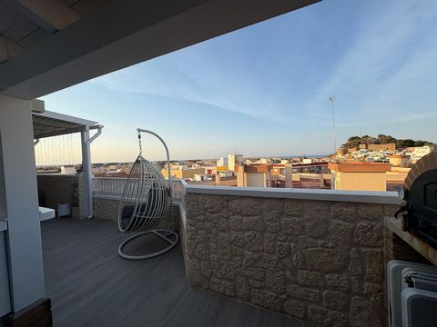 Descripción del objeto: Ático Dúplex Reformado con Terraza de 50 m², Vistas al Mar y al Castillo - Centro de Dénia Se vende exclusivo ático dúplex en el corazón de Dénia, con 150 m² útiles de vivienda y una espectacular terraza de 50 m² con orientación nordeste, ideal para disfrutar del sol de mañana y unas vistas privilegiadas al mar y al castillo. La vivienda fue completamente reformada hace dos años con acabados de alta calidad y detalles que marcan la diferencia: carpintería de madera maciza, aire acondicionado frío/calor, y una cuidada distribución que combina funcionalidad y estilo. En la planta baja se encuentra el amplio salón-comedor, muy luminoso, con salida directa a la terraza. Esta cuenta con una cocina de verano, horno de leña y zona chill out, perfecta para relajarse o disfrutar con amigos. En esta misma planta se ubican también el dormitorio principal y un baño completo. En la planta alta encontramos dos dormitorios adicionales, ambos con baño en suite (uno de ellos con el baño en frente). La cocina principal es amplia, cómoda y totalmente equipada, ideal para el día a día. Incluido en el precio: cochera cerrada con capacidad para un coche grande y dos motos, además de prácticos armarios de almacenaje. Edificio con ascensor. Ubicación de casa/solar: Ubicación inmejorable, en pleno centro de Dénia: a 5 minutos andando de Marqués de Campo y a 10 minutos del puerto. Otros: Calificación energética está pendiente.