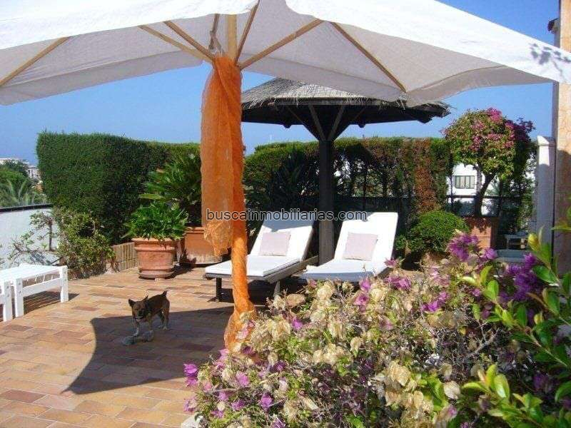Es un piso ático.El piso está ubicado en Denia (ALICANTE). Tiene una terraza con 180 m2 descubiertos. Dispone de vistas libres. El piso dispone de dos dormitorios. De ellos dos con baño. El piso consta de un total de dos baños, de los cuales Dispone de una cocina, de tipo americano. Tiene lavavajillas, horno y frigorífico. El equipamiento general consta de aire acondicionado. Tiene un garaje. Existen los siguientes bienes comunitarios: dos pistas de tenis, una zona de juegos, dos piscinas y zonas verdes. Además está cerca de la playa.