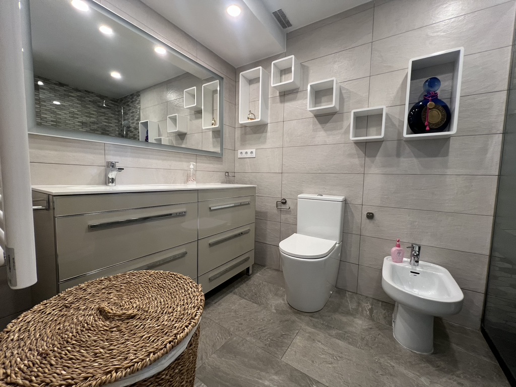 Este amplio ático dúplex dispone de cuatro dormitorios, dos cuartos de baño y un aseo. En la planta principal encontrarás un gran salón con acceso a una terraza cubierta con vistas al mar, la cocina, el comedor y el dormitorio principal con baño en suite. En la planta superior se distribuyen tres dormitorios adicionales y uno de los cuartos de baño.