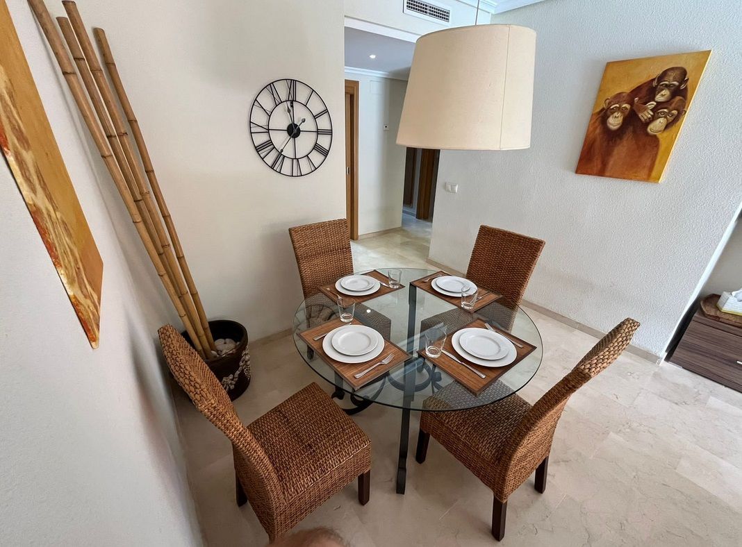 Bonito apartamento en centro urbano, a escasos minutos de la playa. Este apartamento cuenta con una superficie construida de 100 m², de los cuales 72 m² son útiles, ofreciendo un espacio cómodo y bien aprovechado. Dispone de dos dormitorios y dos baños, con una distribución práctica y luminosa que favorece la vida diaria. La cocina independiente, amplia y funcional, resulta ideal para quienes disfrutan de la gastronomía en un ambiente acogedor. Uno de los grandes atractivos de la vivienda es su terraza de 17 m² orientada al este, perfecta para desayunar al sol, relajarse al aire libre o compartir momentos con familia y amigos mientras se disfruta de la brisa mediterránea. El apartamento está equipado con aire acondicionado y calefacción por conductos, cuenta con garaje, trastero y lavadero, además de la comodidad de ascensor en el edificio. La comunidad ofrece piscina y zonas ajardinadas, creando un entorno tranquilo pensado para el descanso y el disfrute. La vivienda garantiza también confort y seguridad gracias a la puerta de entrada reforzada y a las ventanas con doble acristalamiento. A un paso del centro urbano y de todos los servicios.