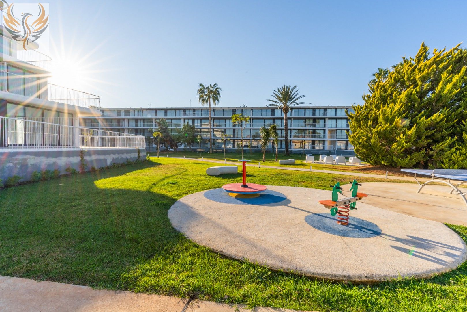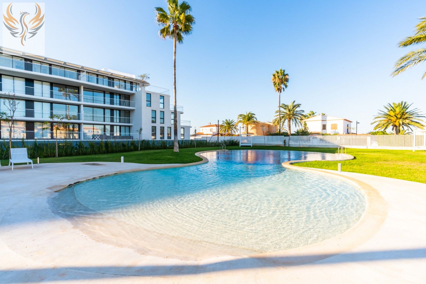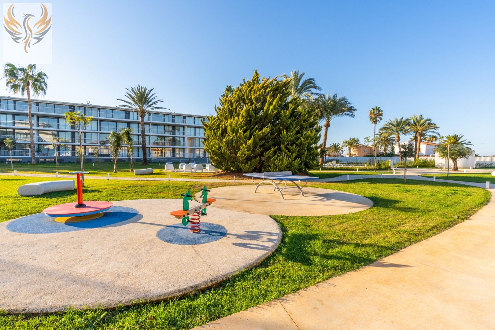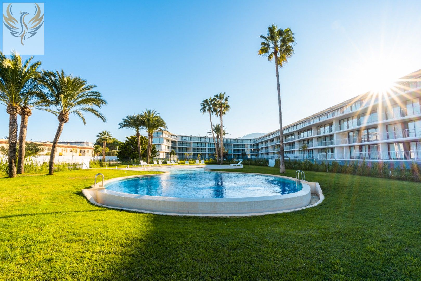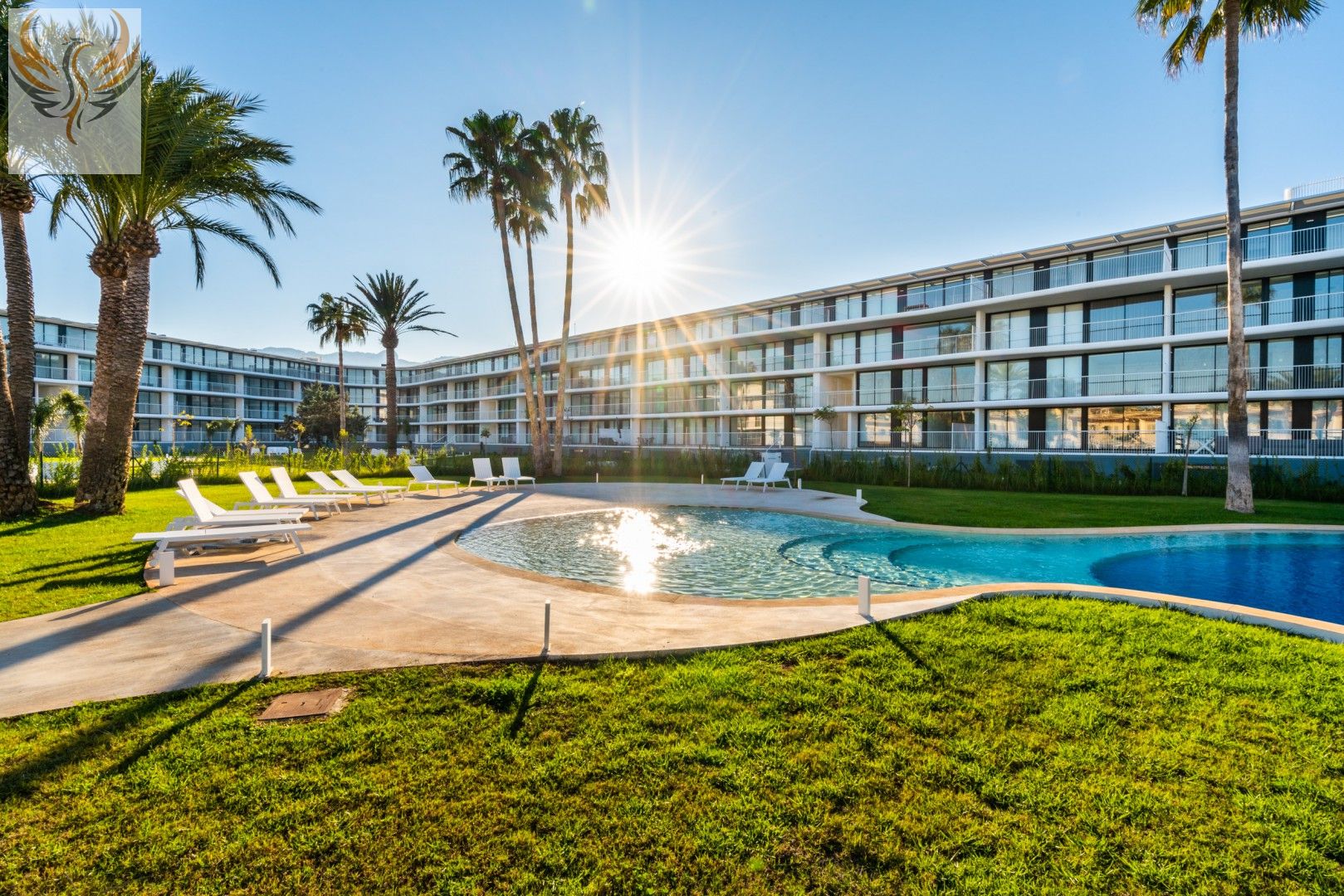 Edificio de 78 apartamentos de 1, 2 y 3 habitaciones con 1 o 2 baños, en urbanización con piscina a 20 metros de la playa en Denia, Costa Blanca Norte.