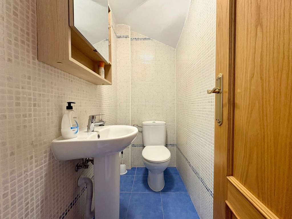 Planta superior: dos dormitorios amplios, un baño para invitados, y la habitación principal con baño en suite. Esta planta destaca por su terraza privada, accesible desde ambos dormitorios, perfecta para disfrutar de momentos de tranquilidad y de sus bonitas vistas al mar.