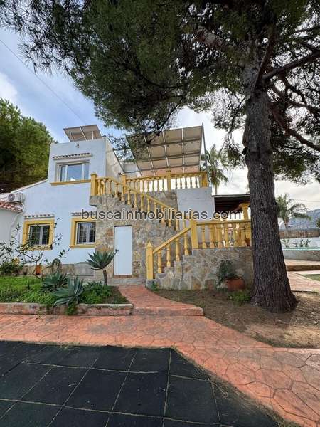 Moderno chalet con vistas al mar y a la montaña, con 4 dormitorios y 3 baños, piscina privada, jardin y una casita para los invitados en zona de Las Marinas, Denia. La casa está completamente reformada.