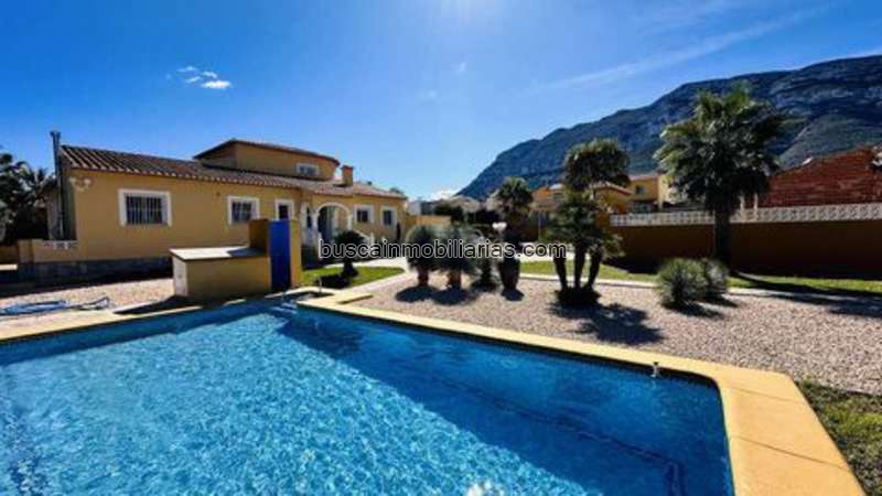 Descripción del objeto: Una oportunidad con muchas posibilidades de uso. Si desea vivir cerca de la ciudad, en un lugar tranquilo, espacioso y soleado, entonces debe echar un vistazo más de cerca a esta propiedad. La gran parcela con numerosas opciones de uso le ofrece libertad y privacidad por igual. En la propiedad hay una pista de tenis muy bien cuidada, una gran piscina de 5 x 10 metros y una fuente con agua potable. La casa se construyó según los estándares alemanes con garaje y ofrece un equipamiento muy completo. En total, la villa ofrece 4 dormitorios grandes, 3 baños, 4 aseos, 1 cocina amueblada, 1 sala de máquinas y almacén, así como 1 gran salón, una gran terraza cubierta y una gran terraza descubierta con vistas al Montgó. La gran pista de tenis puede utilizarse como pista de tenis o, si es necesario, ampliarse para construir, por ejemplo, una casa de invitados, garajes, barbacoa, etc. La propiedad tiene una excelente relación calidad-precio. Existe un informe de valoración actualizado por un valor aproximado de 1,2 millones de euros. Por lo tanto, el precio de compra es fijo. Equipamiento adicional: La casa está muy bien equipada. Todas las habitaciones son grandes y luminosas. Construcción maciza, suelos de baldosas, ventanas de aluminio con vidrio aislante y persianas, sistema de alarma, calefacción central de gasoil, aire acondicionado centralizado en el techo, pozo con agua potable, pista de tenis de medidas estándar, gran piscina de 5 x 10 metros, ducha exterior, descalcificador de agua, nueva tecnología de filtrado para la piscina, posibilidad de conexión de fibra óptica, sauna, puerta de entrada eléctrica, sótano, cámara de aire bajo la losa del suelo con abertura de inspección, garaje, sala técnica para suministros y lavadora, conexión de alcantarillado, etc. Ubicación de casa/solar: Zona residencial muy popular y soleada al final de un callejón sin salida. Todo llano y cerca de la ciudad. Las terrazas están orientadas al suroeste al 100 %. En las inmediaciones se encuentran los supermercados Consum y Lidl. Cortas distancias al centro de la ciudad y al puerto. Otros: Calificación energética está pendiente.