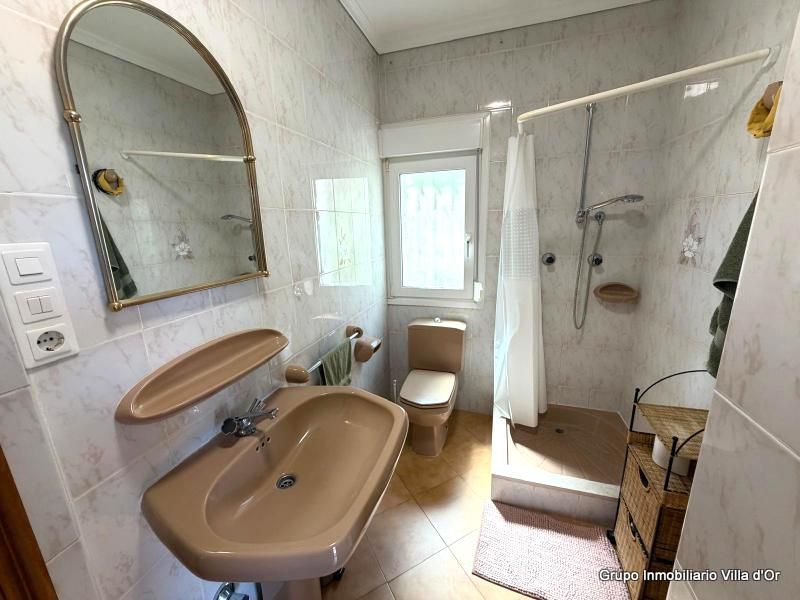 En la planta principal encontramos un acogedor salón con chimenea, una cocina independiente con zona de comedor, una terraza acristalada con vistas al mar, dos dormitorios y dos baños (uno de ellos en suite).
