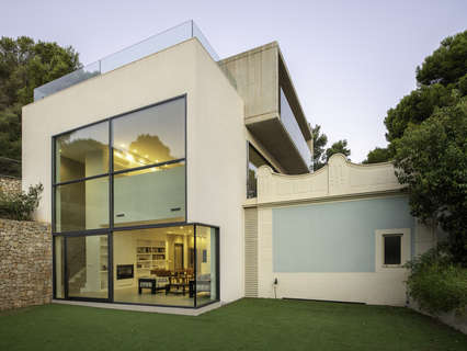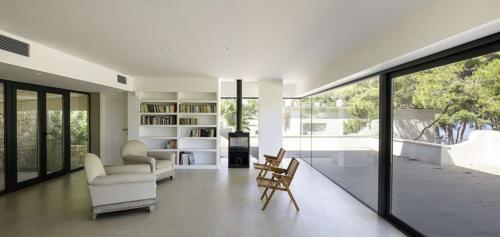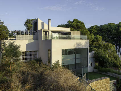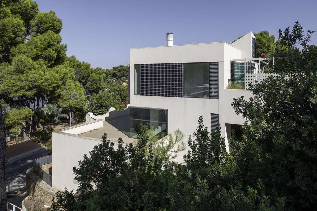 Cuenta con cuatro dormitorios amplios y seis baños completos, además de ascensor interior, varias terrazas con vistas panorámicas al mar y un jardín privado. Los grandes ventanales ofrecen luz natural durante todo el día y conexión visual con el entorno natural y el Mediterráneo.