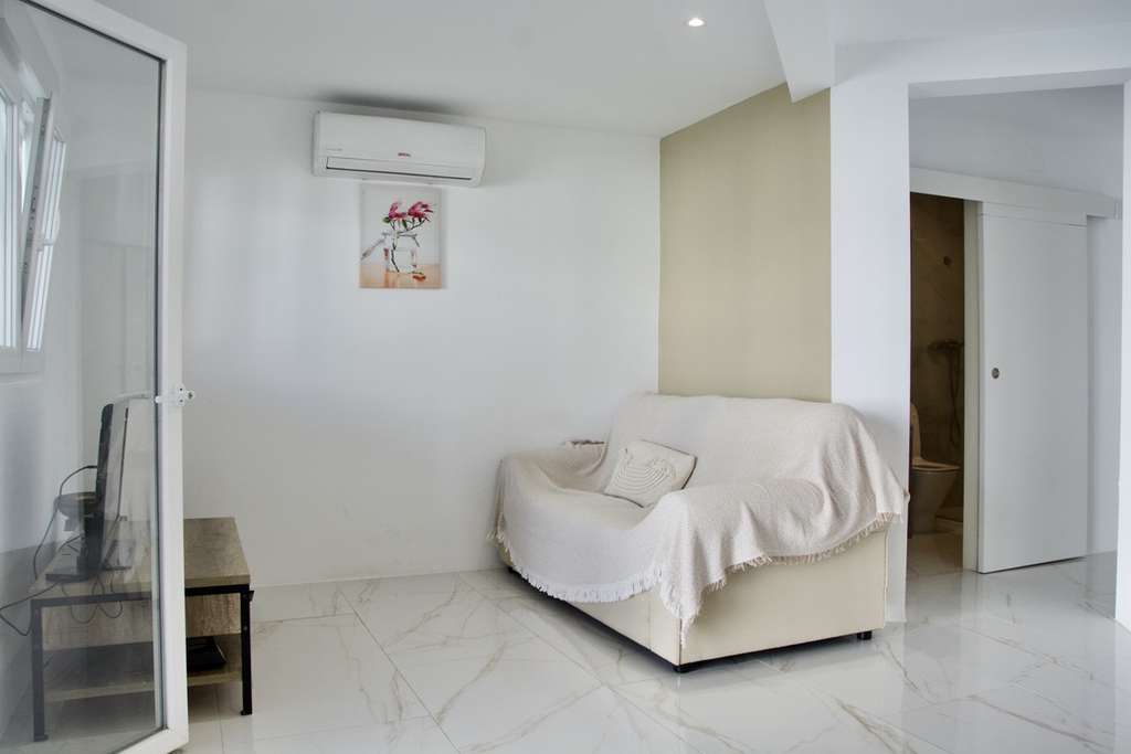 El apartamento independiente, perfecto para invitados o para alquiler vacacional, dispone de un salón con cocina abierta, dos dormitorios y un baño, además de acceso directo a la piscina y a la terraza cubierta, equipada con cocina de verano y barbacoa.