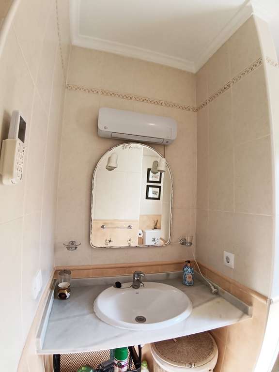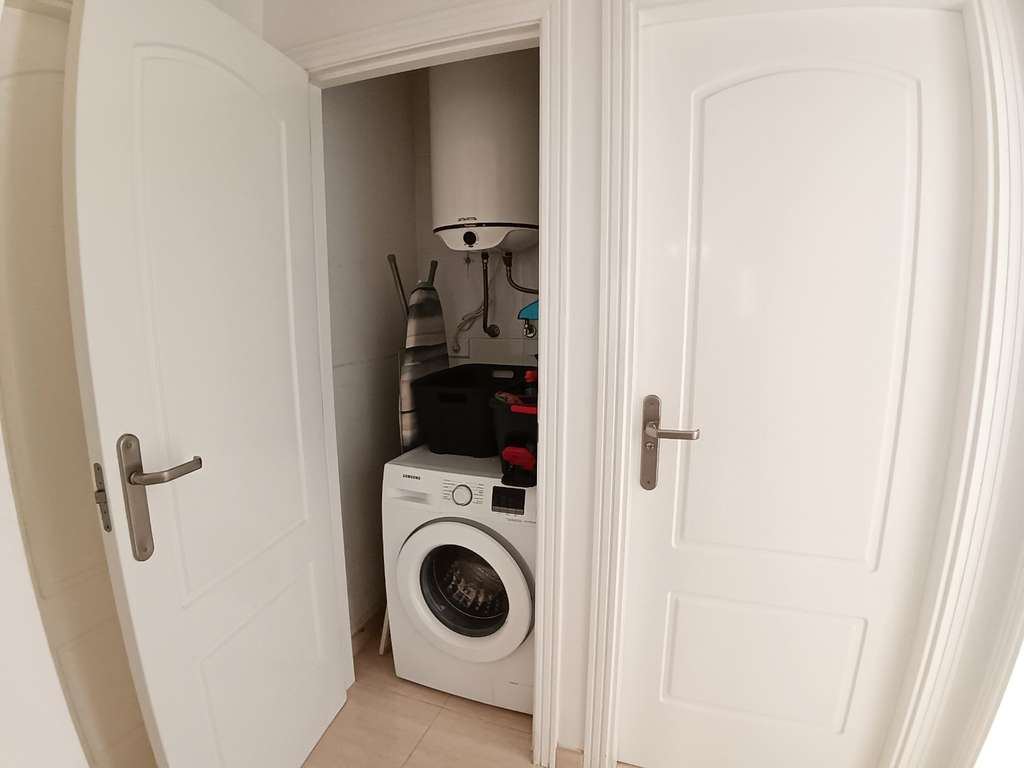 En esta misma planta se encuentran dos habitaciones dobles con armarios empotrados, un baño con ducha y un armario de servicio que alberga el calentador de agua eléctrico y la lavadora.