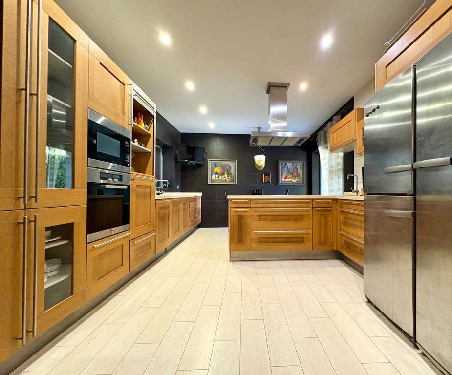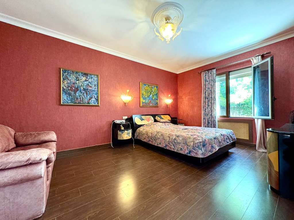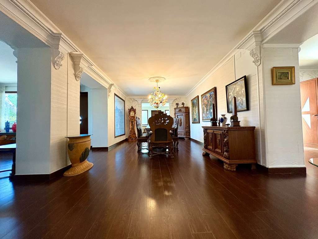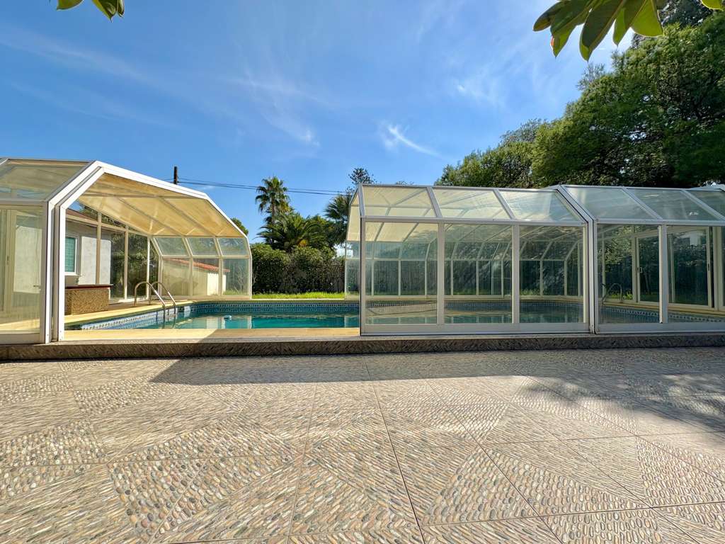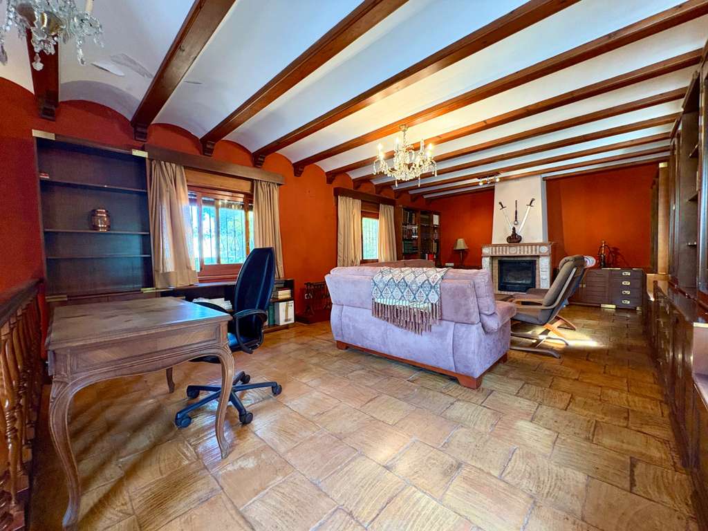 La propiedad se asienta sobre una gran parcela plana con varios jardines cuidados, árboles frutales, piscina cubierta de buen tamaño —ideal para disfrutarla durante todo el año—, casa de madera con sauna privada y sala de estar, zona de barbacoa ,trastero, amplia zona de aparcamiento, pozo, bodega y una acogedora biblioteca. Además, dispone de un apartamento independiente, perfecto para invitados o amigos con dos dormitorios, un baño completo y salón con cocina.