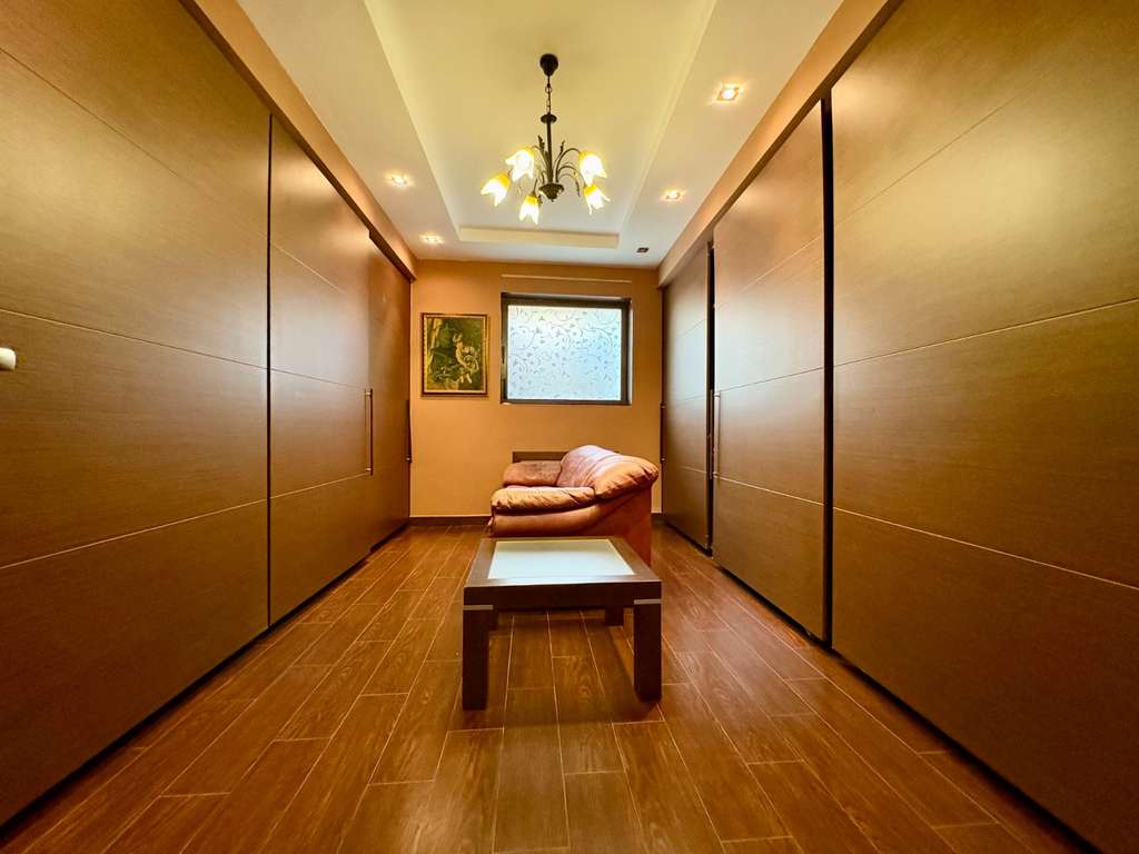 En la planta principal encontramos un elegante recibidor, un amplio salón-comedor con grandes ventanales que llenan el espacio de luz natural, una cocina independiente totalmente equipada con salida a la parcela, dos dormitorios, una sala de oficina, un baño completo, un aseo de cortesía y un vestidor hecho a medida.