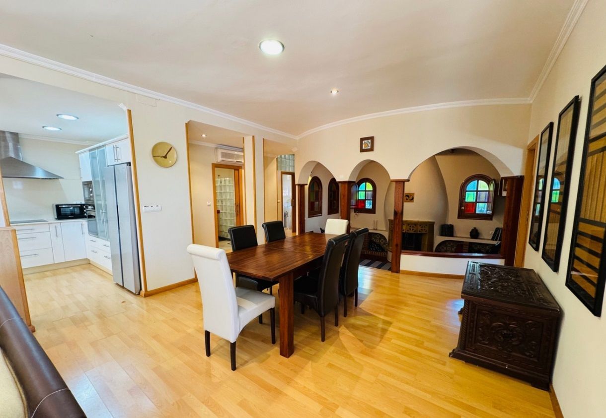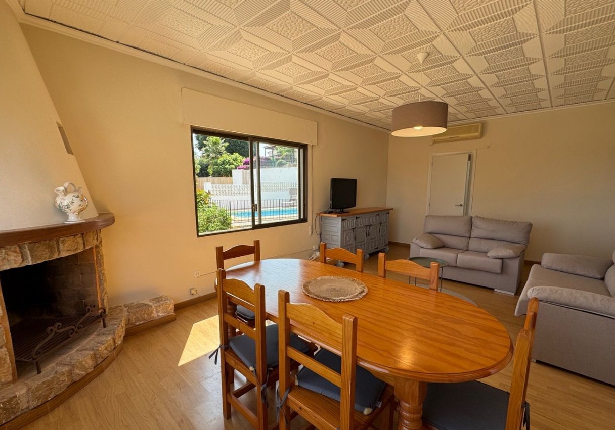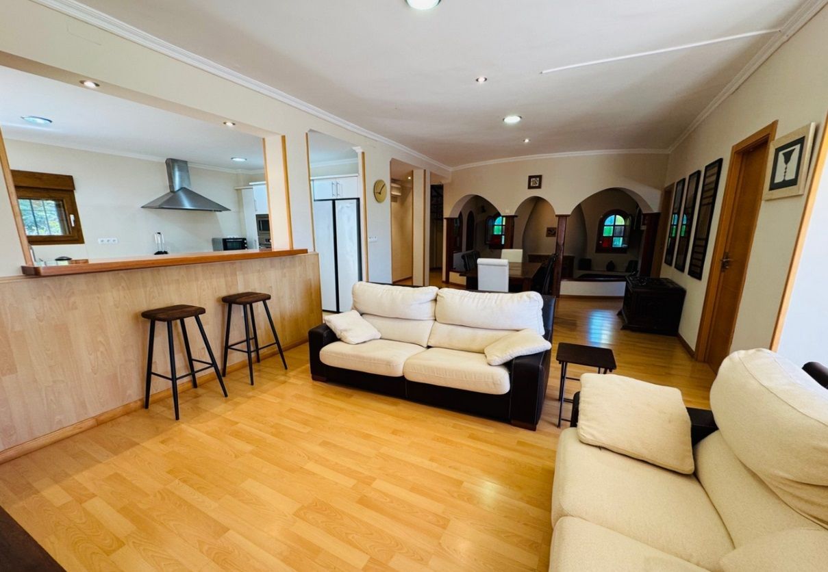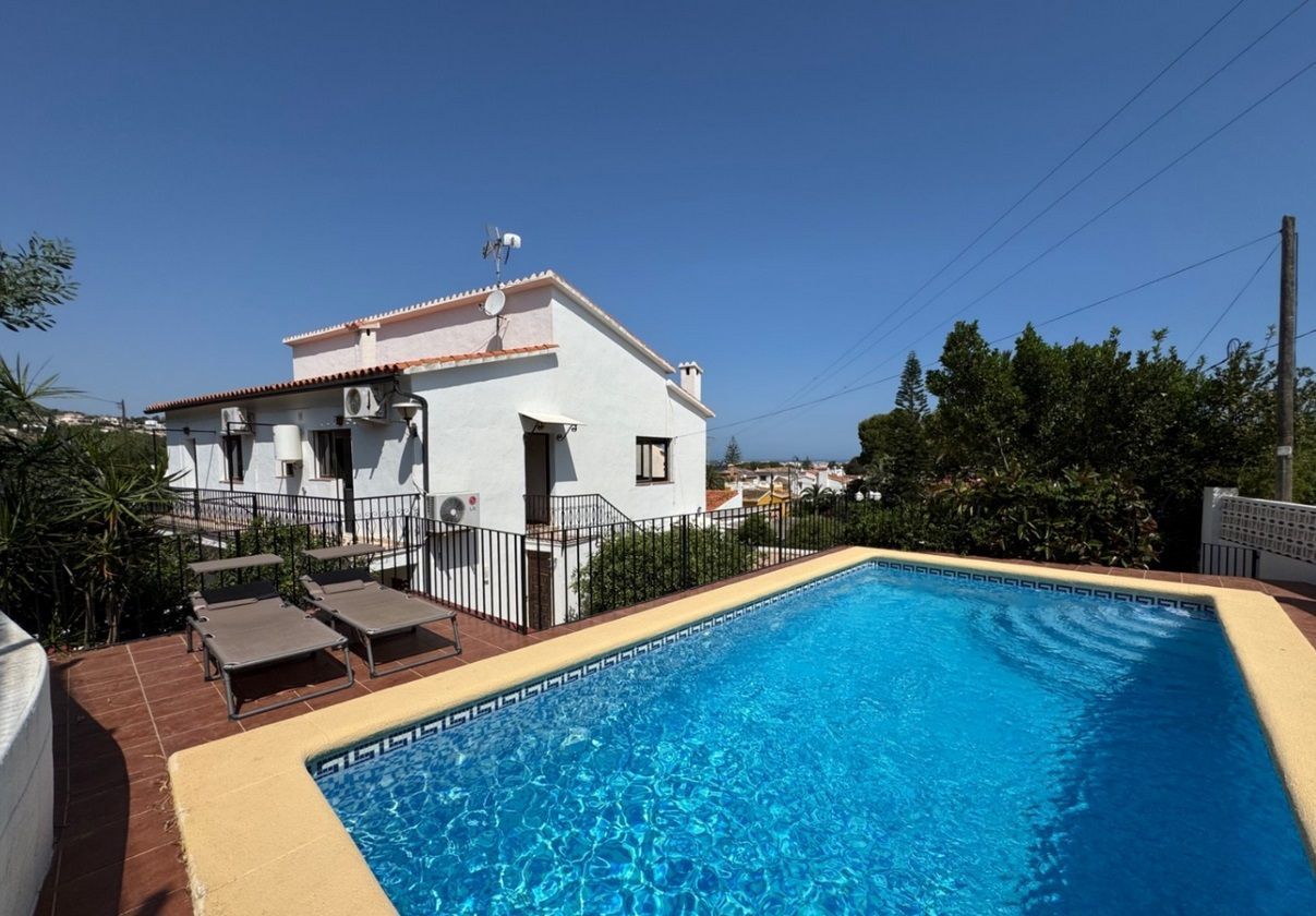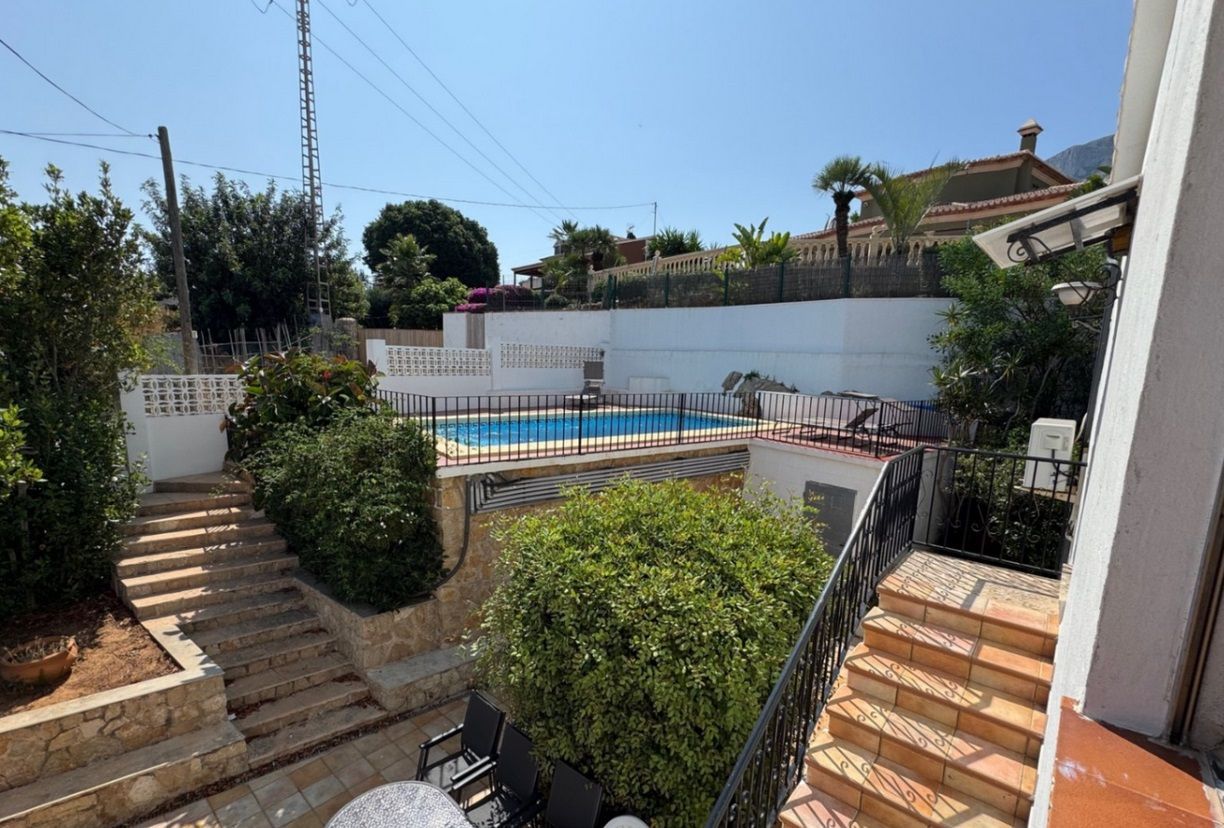 Chalet independiente con piscina privada en una parcela de 1.000 m², ubicado en la zona Montgó - Santa Lucía - Campusos de Dénia, a tan solo 2 km del casco urbano y del puerto. La propiedad ofrece un entorno tranquilo y confortable, con una amplia terraza desde la que se disfrutan vistas panorámicas. La vivienda ha sido reformada recientemente y se presenta parcialmente amueblada, con un estilo acogedor y actual. En la planta baja se encuentra un amplio salón-comedor conectado a una cocina espaciosa, una zona de estar junto a la chimenea, dos dormitorios dobles, un baño y una sala de lavandería. La planta superior, a la que se accede tanto por una escalera interior de caracol como por una exterior, alberga tres dormitorios dobles, un baño, otro salón-comedor, cocina independiente y una gran terraza cubierta con vistas abiertas. En el exterior se disfruta de una piscina elevada, zona de barbacoa, huerto con frutales y parras, aparcamiento techado para varios vehículos y amplias zonas para relajarse al aire libre. La vivienda está equipada con aire acondicionado frío-calor en todas las estancias.