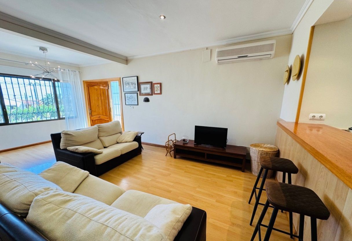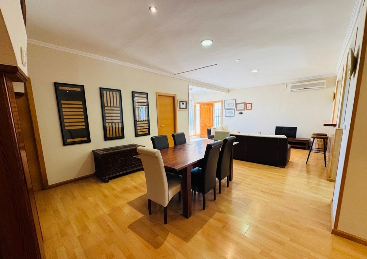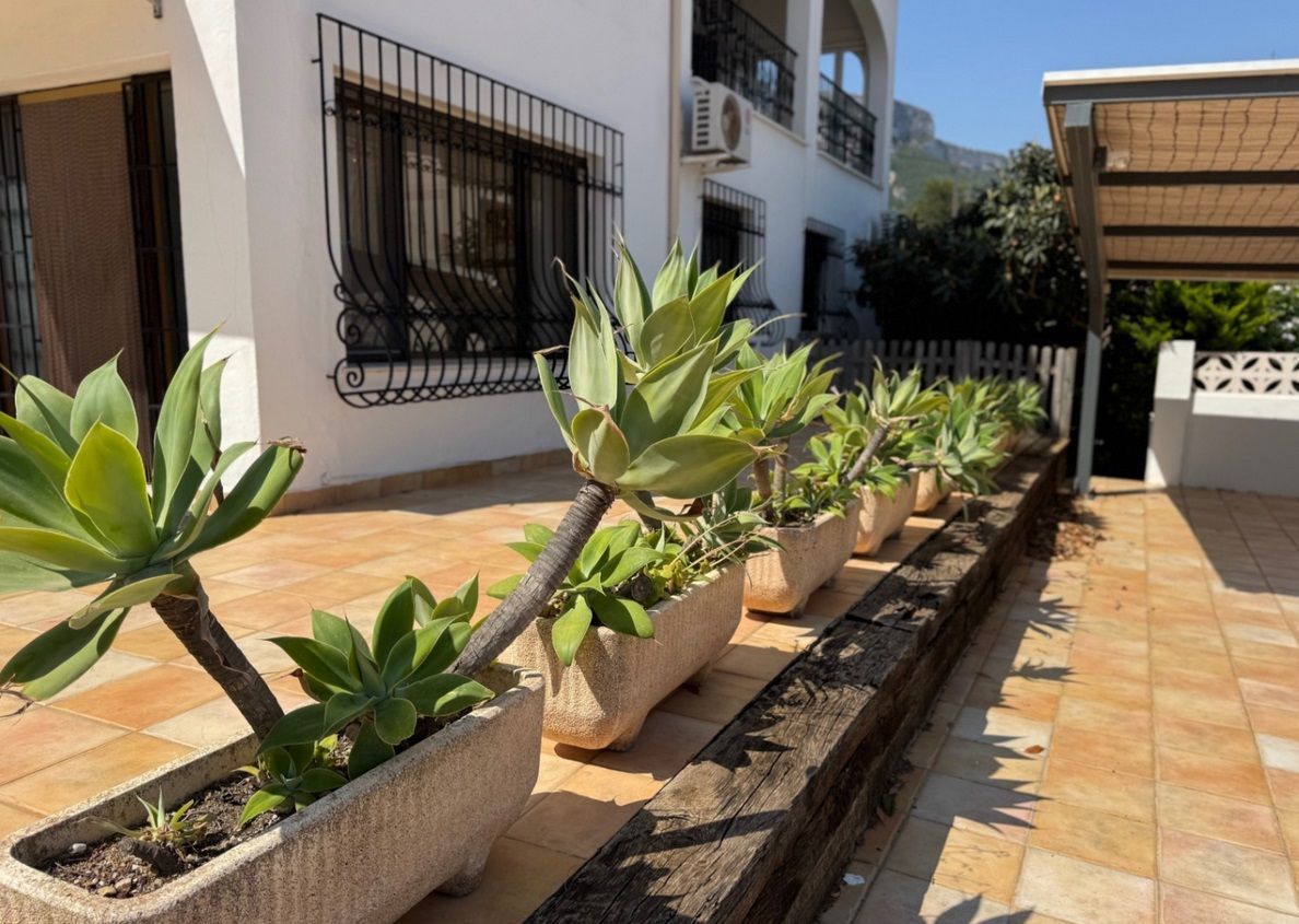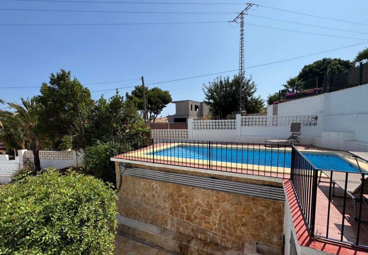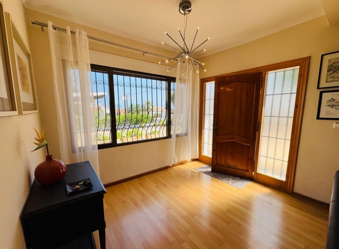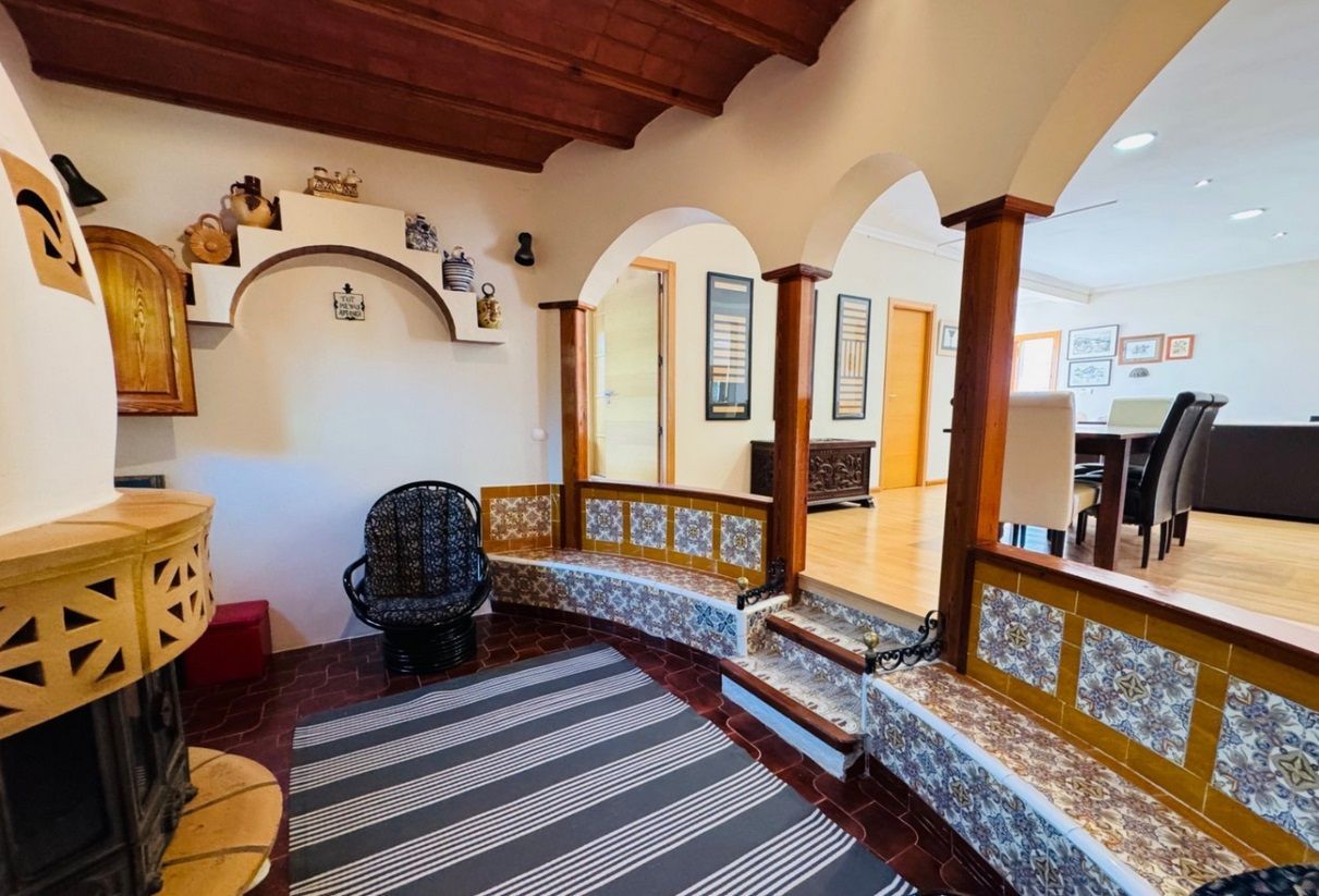 Chalet independiente con piscina privada en una parcela de 1.000 m², ubicado en la zona Montgó - Santa Lucía - Campusos de Dénia, a tan solo 2 km del casco urbano y del puerto. La propiedad ofrece un entorno tranquilo y confortable, con una amplia terraza desde la que se disfrutan vistas panorámicas. La vivienda ha sido reformada recientemente y se presenta parcialmente amueblada, con un estilo acogedor y actual. En la planta baja se encuentra un amplio salón-comedor conectado a una cocina espaciosa, una zona de estar junto a la chimenea, dos dormitorios dobles, un baño y una sala de lavandería. La planta superior, a la que se accede tanto por una escalera interior de caracol como por una exterior, alberga tres dormitorios dobles, un baño, otro salón-comedor, cocina independiente y una gran terraza cubierta con vistas abiertas. En el exterior se disfruta de una piscina elevada, zona de barbacoa, huerto con frutales y parras, aparcamiento techado para varios vehículos y amplias zonas para relajarse al aire libre. La vivienda está equipada con aire acondicionado frío-calor en todas las estancias.