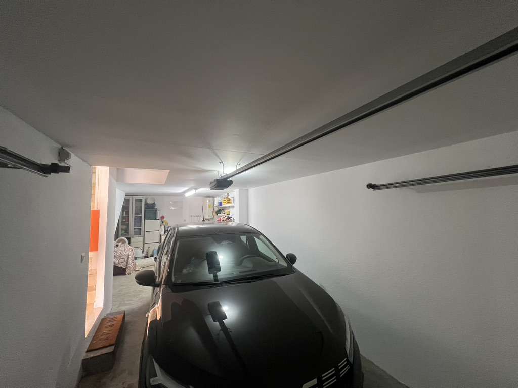 Garaje cubierto con espacio para vehículo y zona de trastero.