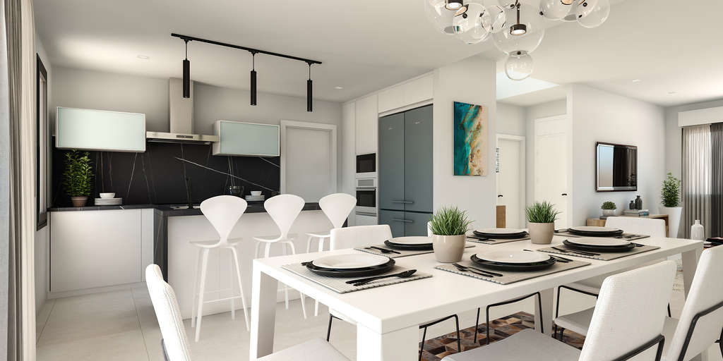 El diseño exterior de estas viviendas en Dénia destaca por su integración con el entorno natural. Cada propiedad dispone de un jardín privado, ideal para disfrutar del clima mediterráneo. Además, las terrazas y solariums ofrecen espacios adicionales para el ocio al aire libre, permitiendo a los residentes disfrutar de vistas despejadas y momentos de relajación. La presencia de una piscina privada en cada vivienda añade un toque de exclusividad, convirtiendo el hogar en un oasis personal. Las áreas ajardinadas comunitarias complementan el entorno, proporcionando un espacio verde compartido para el disfrute de todos los residentes.