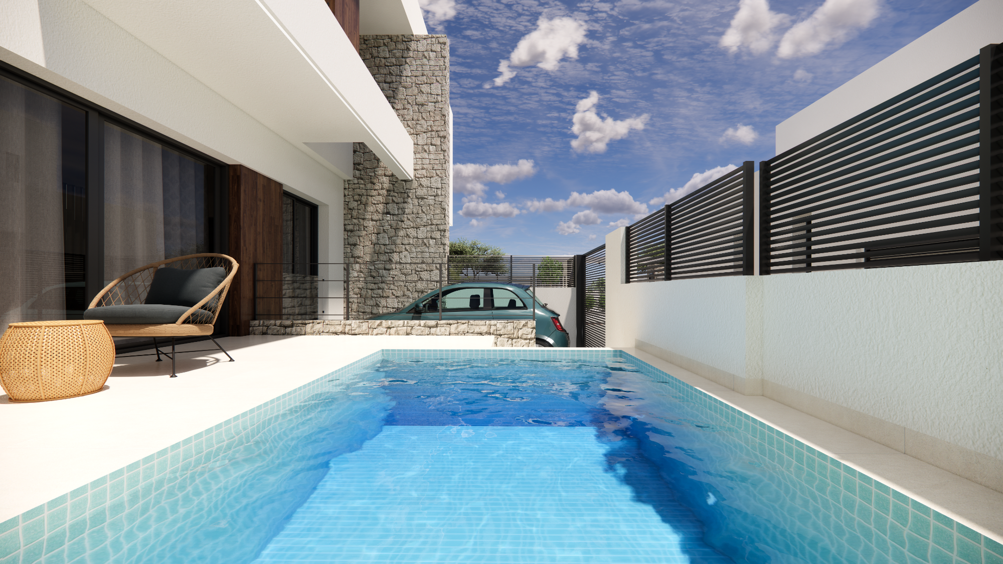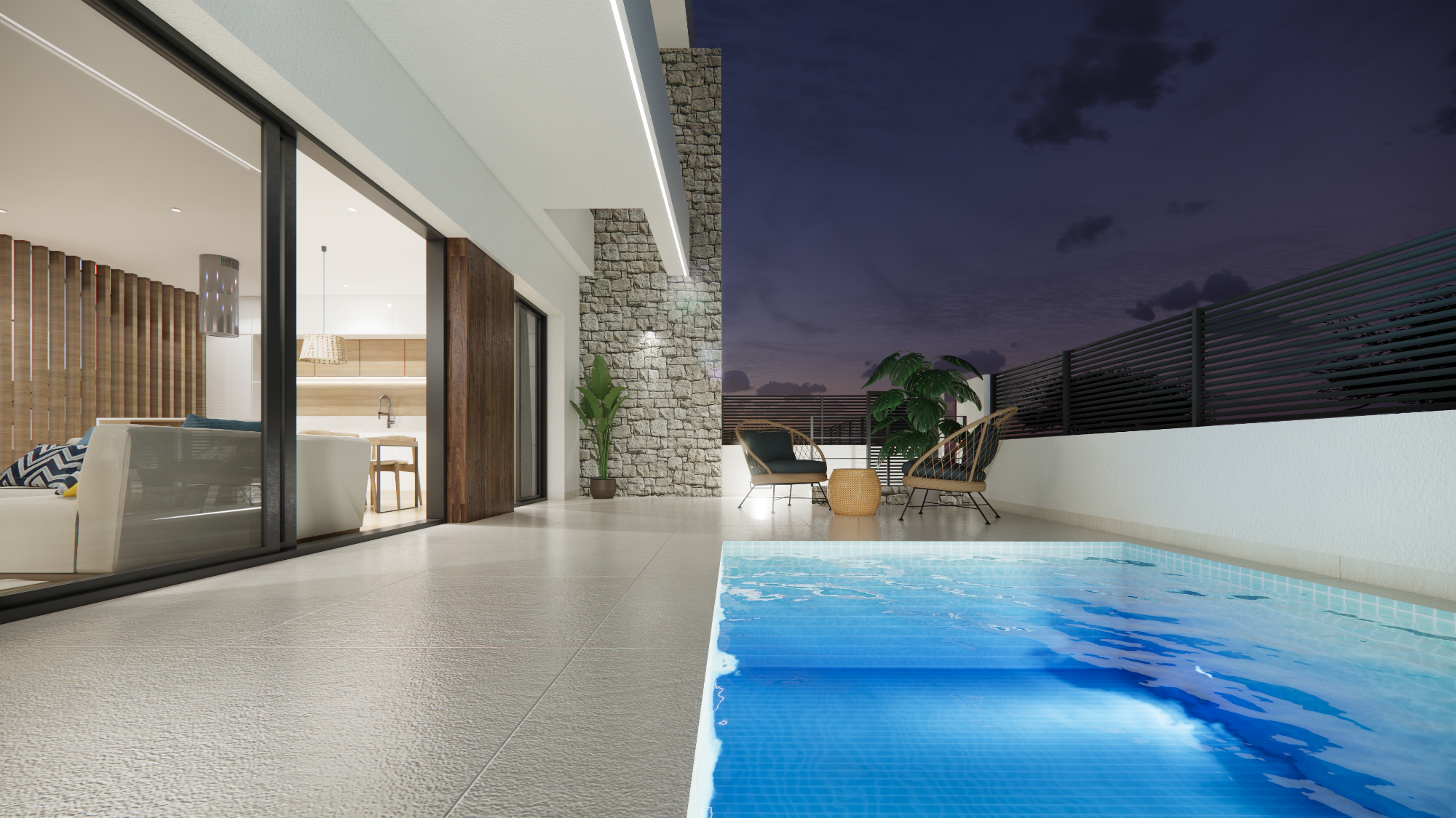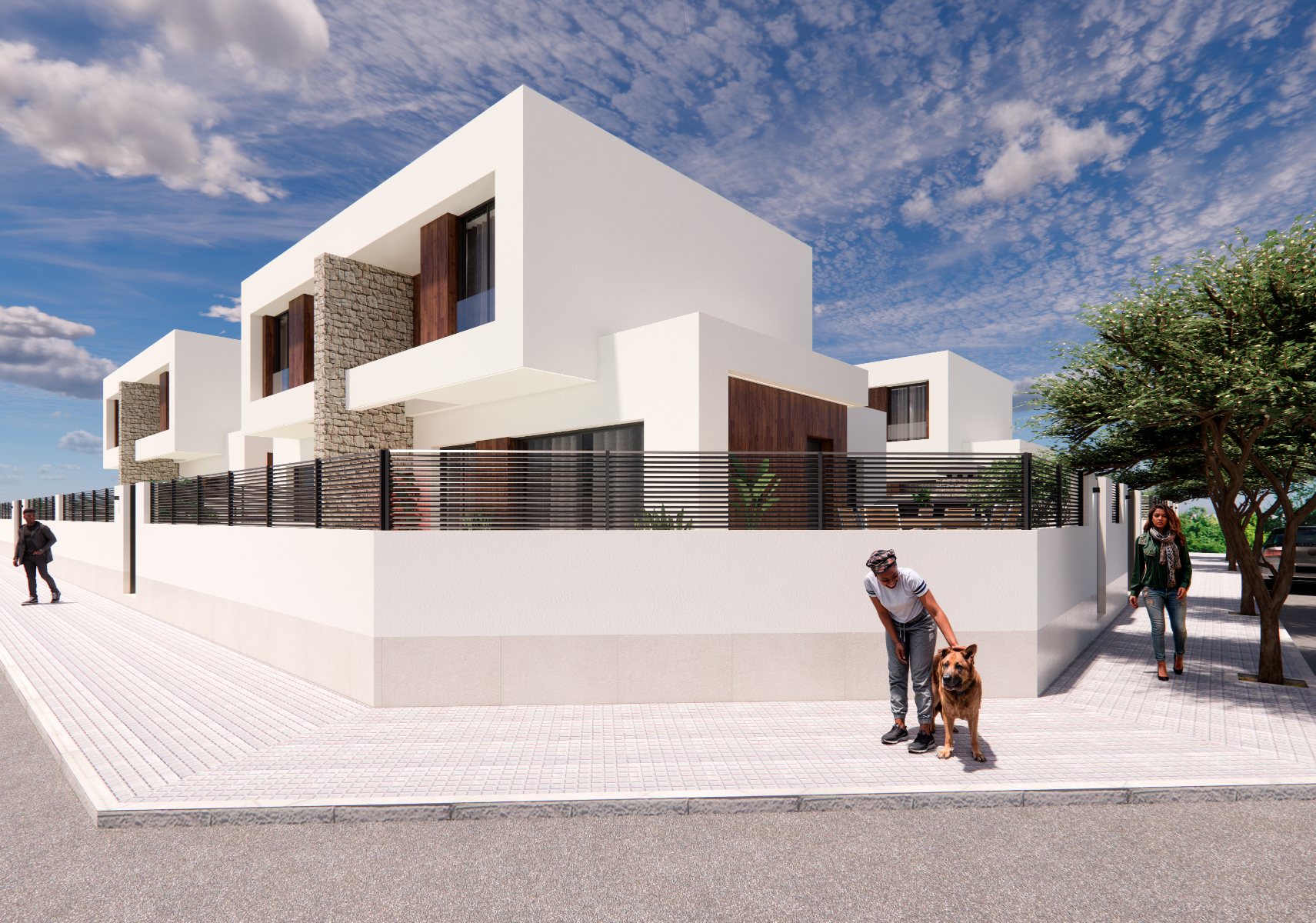 Casa adosada de obra nueva ubicada en Dolores, diseñada con un estilo moderno y materiales de alta calidad. Construida en 2025, esta vivienda ofrece 3 habitaciones y 3 baños en una superficie construida de 143,65 m², sobre parcelas que oscilan entre 151 m² y 200 m².
