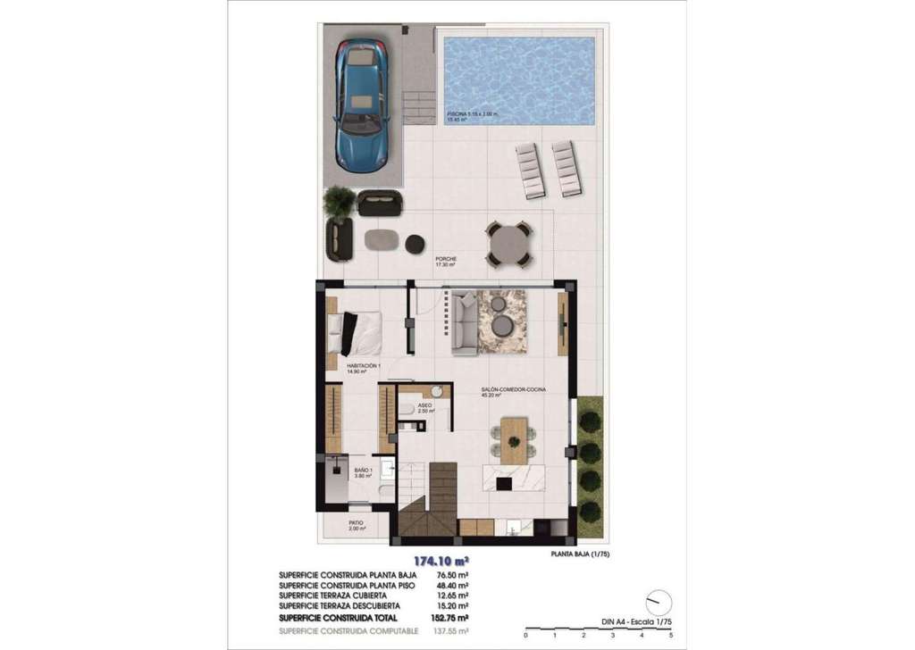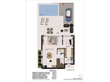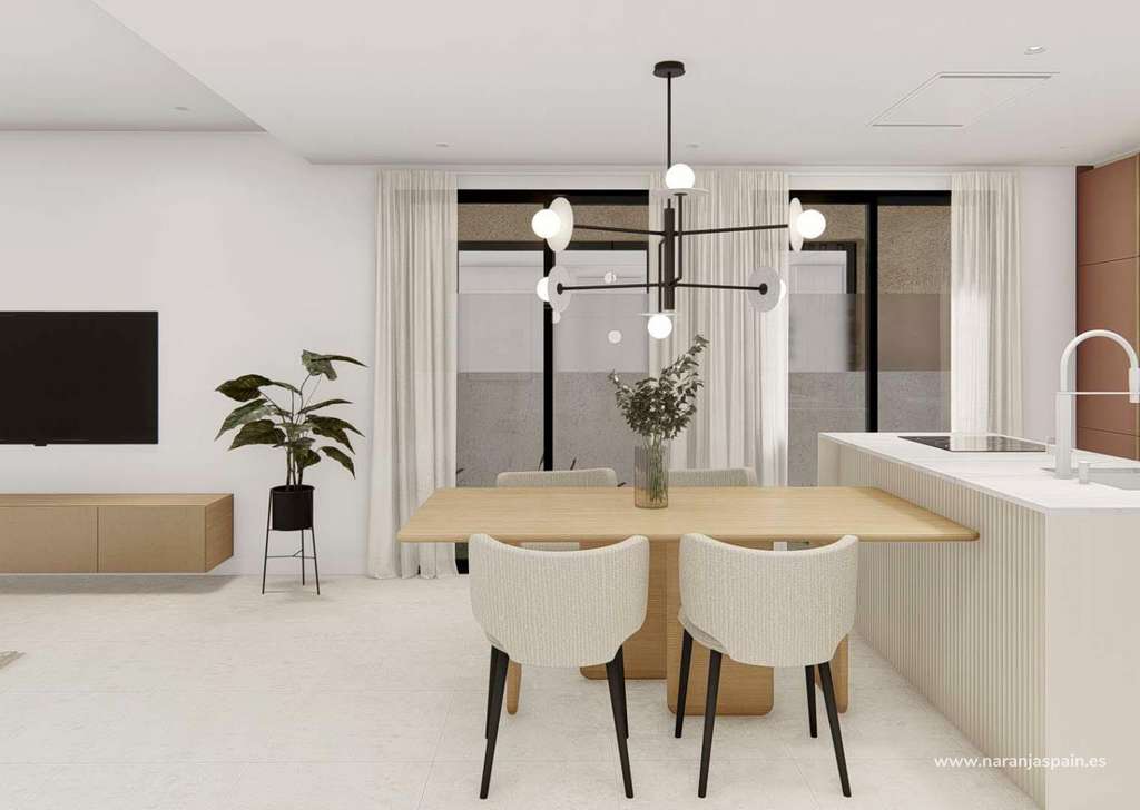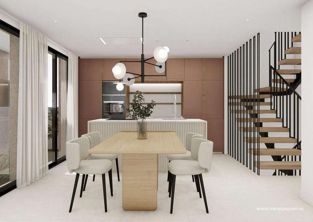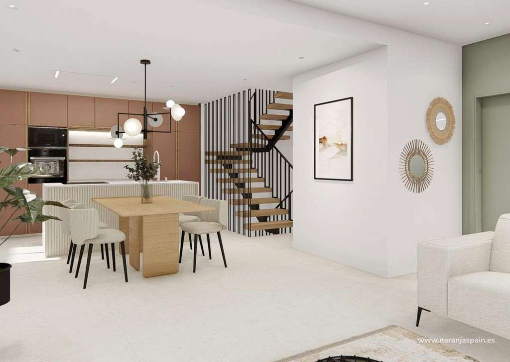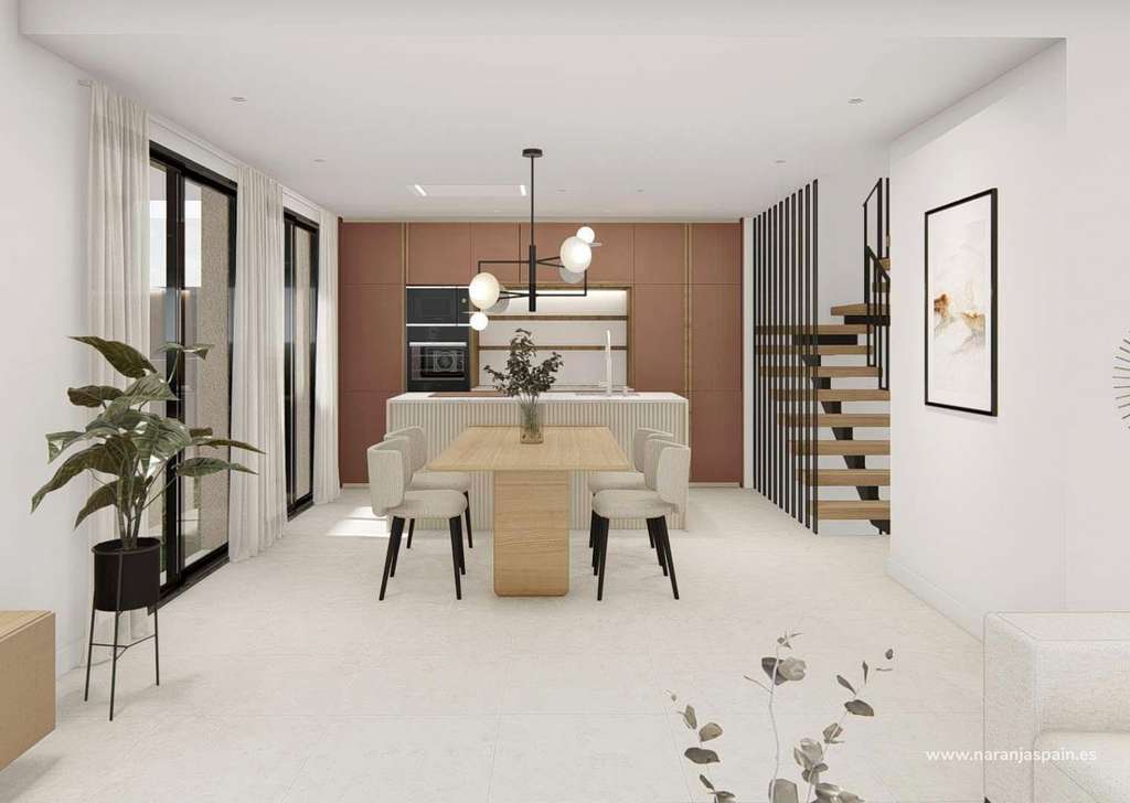 Quads construidos en 2 plantas, dispone de 3 dormitorios, 3 baños, cocina americana, salón con acceso directo a la terraza, jardín privado con la piscina y plaza de aparcamiento.