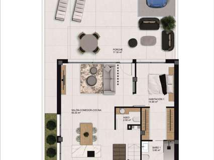 Quads construidos en 2 plantas, dispone de 3 dormitorios, 3 baños, cocina americana, salón con acceso directo a la terraza, jardín privado con la piscina y plaza de aparcamiento.