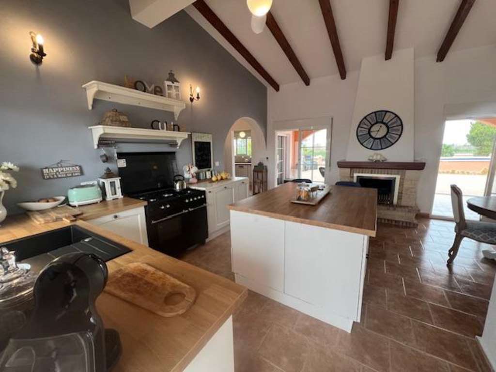 Impresionante casa de campo en Dolores, ALICANTE con 3 habitaciones dobles, 2 baños, 2 vestidores, salón / comedor con chimenea, cocina abierta, cocina de preparación independiente, estudio y segundo salón con acceso a la zona de terraza al jardín. La villa se encuentra en una parcela vallada de 6.300m con una piscina de 10 x 5m con una gran terraza circundante. Idealmente situado en un entorno rural tranquilo aunque cerca de la ciudad y a sólo 15 minutos en coche de las playas y 35 minutos del aeropuerto de Alicante / Elche. Disfrute de las magníficas vistas desde la terraza soleada de la azotea. Red de agua y electricidad mediante paneles solares con generador de respaldo.