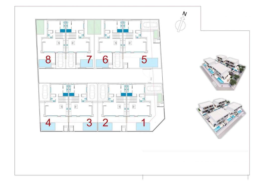 Esta moderna urbanización de Dolores cuenta con chalets adosados de nueva construcción. Diseñadas con un estilo contemporáneo y pensando en la comodidad, cada casa se distribuye en dos plantas, con 3 dormitorios y 3 baños. La cocina abierta conecta perfectamente con el salón, que conduce directamente a una terraza privada y al jardín. Además, cada vivienda cuenta con su propia piscina privada y plaza de aparcamiento.