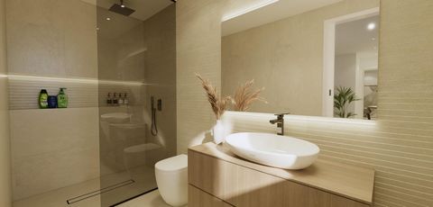 Estas modernas villas de dos plantas han sido diseñadas para ofrecer comodidad, funcionalidad y estilo. En la planta baja, encontrará una luminosa cocina abierta conectada al salón-comedor, con grandes puertas correderas que dan directamente a la terraza y al jardín privado con piscina. La planta baja también cuenta con un dormitorio con baño en suite, un aseo de invitados y una práctica zona de lavandería al aire libre.