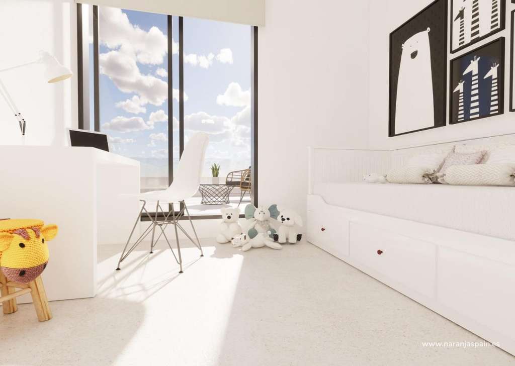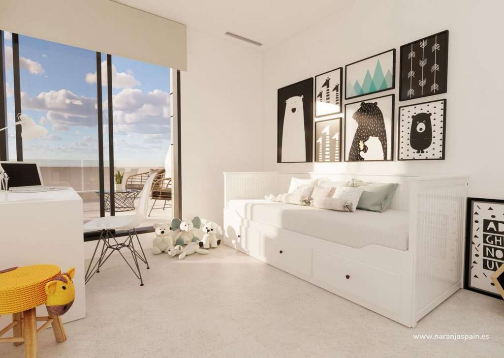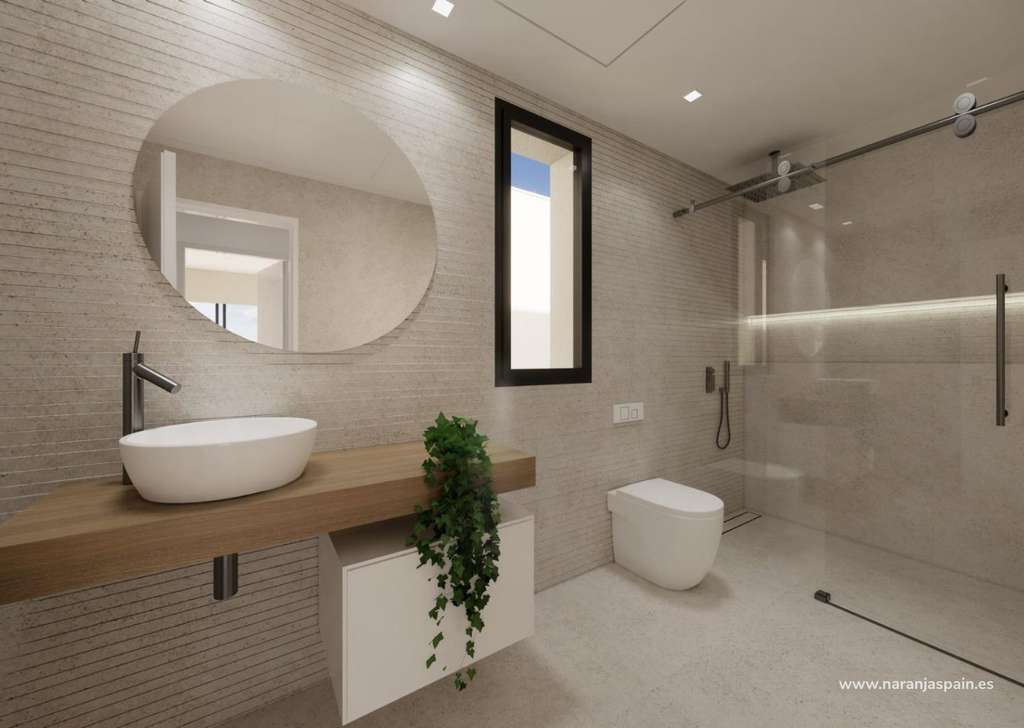 En la planta superior, dos dormitorios adicionales y un baño completo proporcionan comodidad a la familia y a los invitados. Una gran terraza abierta completa este nivel, ideal para disfrutar del clima mediterráneo durante todo el año.