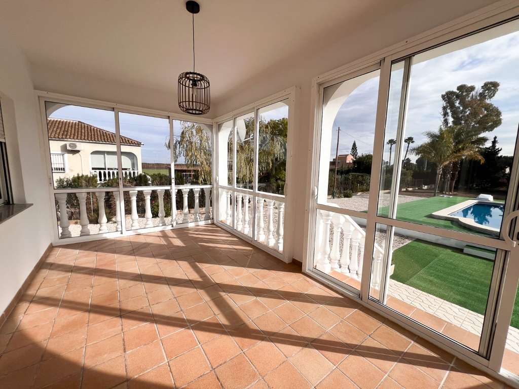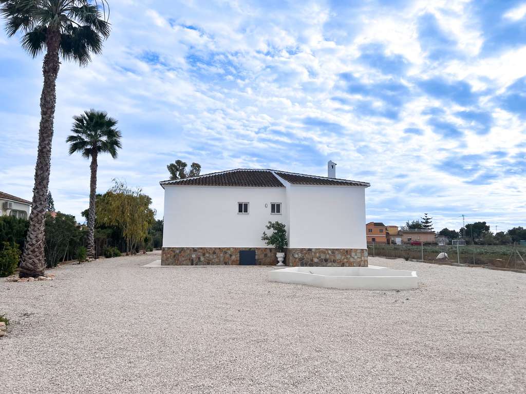 La vivienda se prolonga hacia una zona de porche cubierto, concebida como una auténtica extensión del interior, desde la que se accede al jardín y a una fantásticapiscina privada de 52 m², equipada con ducha exterior y una práctica zona de barbacoa. La propiedad se asienta sobre una parcela de 3.055 m² que rodea completamente la vivienda, con diferentes áreas exteriores y una maravillosazona de jardín sin ajardinar, ideal como lienzo en blanco para diseñar un espacio exterior a medida. Además, cuenta con un edificio auxiliar independiente que incluye lavadero, dormitorio adicional para invitados con el baño en suite,y garaje, aportando versatilidad y valor añadido. Con un total de 219 m² construidos entre vivienda principal y anexos, la finca se sitúa en un entorno tranquilo rodeado de árboles y campos de cultivo, a solo 3 minutos en coche de Dolores, localidad que ofrece todos los servicios esenciales como restaurantes, supermercados, centro de salud y comercios, y con el mar a unos 7 minutos en coche, una combinación muy equilibrada en la Costa Blanca.