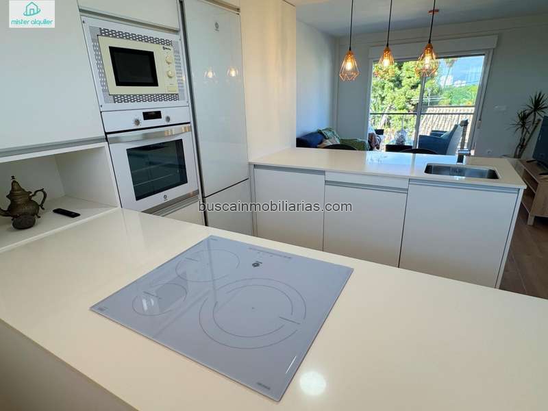 La cocina, totalmente nueva, está equipada con electrodomésticos de primeras marcas (BALAY) como lavadora, secadora, frigorífico, horno, microondas, lavavajillas y campana extractora, además de muebles de gran capacidad que permiten aprovechar al máximo cada hueco de almacenamiento. Es un espacio práctico, moderno y muy funcional que se integra perfectamente con el estilo minimalista de la vivienda.