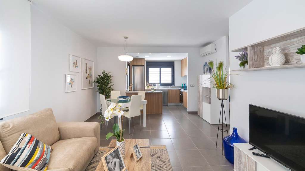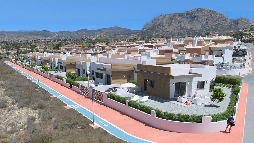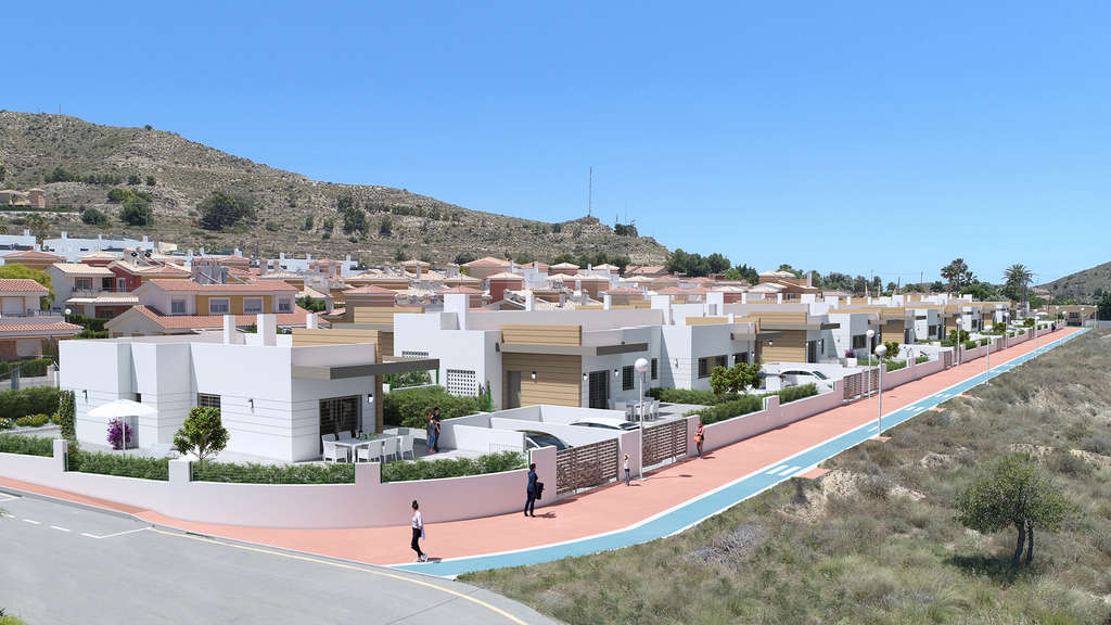 Nuevo conjunto residencial formado por adosados en Busot, a 6km de la playa de El Campello. Se trata de casas modernas de 108 m2 con 3 habitaciones y 2 baños, amplio salón y moderna cocina.