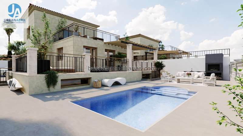 Descubre LA LLUM VILLAS, una excepcional villa de lujo ubicada en El Campello, en la prestigiosa zona de Pueblo Acantilado-Lanuza. Con una superficie construida de 353 m2 , esta obra nueva cuenta con cinco amplias habitaciones dobles y cuatro baños diseñados para el confort. La propiedad destaca por su impecable construcción que incluye cimentación a base de losa maciza y estructura sólida en hormigón armado. Sus acabados premium incluyen revestimientos exteriores elegantes con granito natural y carpintería exterior diseñada para maximizar luminosidad gracias al doble acristalamiento tipo PVC Climalit. Disfrute del aire libre desde sus terrazas o relájese junto a la piscina privada mientras contempla un entorno ajardinado cuidadosamente diseñado por paisajistas profesionales. Además, dispone del equipamiento necesario como instalaciones eléctricas completas incluyendo climatización centralizada así como video portero automático para mayor seguridad. Este es más que un hogar; es un estilo de vida exclusivo ideal tanto para residencias permanentes como vacacionales.