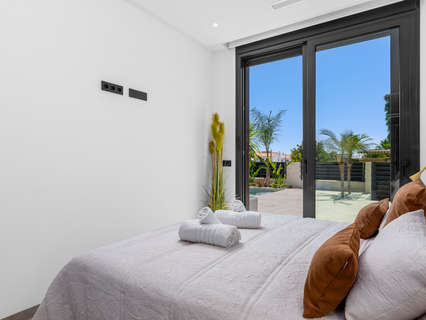 ¿Quieres disfrutar de una casa independiente en esquina con parking, terraza y piscina, situada a tan solo 600 metros de Cala L'Amerador en El Campello? Esta villa de obra nueva puede ser tu sueño hecho realidad, moderna y cerca de todos los servicios. Consta de 3 amplias habitaciones con armarios empotrados, 2 baños y un aseo de invitados. En la primera planta hay una gran terraza para disfrutar. Todos los materiales son de alta calidad y diseño moderno, con puerta de seguridad, jardín totalmente terminado con terraza, persianas eléctricas, carpintería exterior de aluminio, ventanas de doble acristalamiento, calefacción por suelo radiante, etc. La ubicación es privilegiada, con la parada del TRAM a tan solo 300 metros y el acceso a las carreteras N-332 y AP-7 a tan solo unos metros. El aeropuerto de Alicante está a tan solo 20 minutos en coche. En las inmediaciones encontrarás una zona comercial con bares y tiendas. Sin embargo, a 5 minutos en coche de Campello, encontrará todos los servicios necesarios, como escuelas, un centro médico y varias tiendas. Esta villa ofrece un tamaño de construcción de 220 m² y está situada en una parcela de 500 m² y se terminó a mediados de 2024. La orientación de la villa es sureste en una maravillosa parcela de esquina. Las características adicionales de la propiedad incluyen un garaje, paneles solares, trastero, jardín de baldosas con palmeras, aire acondicionado, lavadero y vistas a la zona verde. La villa está completamente amueblada y también cuenta con un amplio lavadero.
