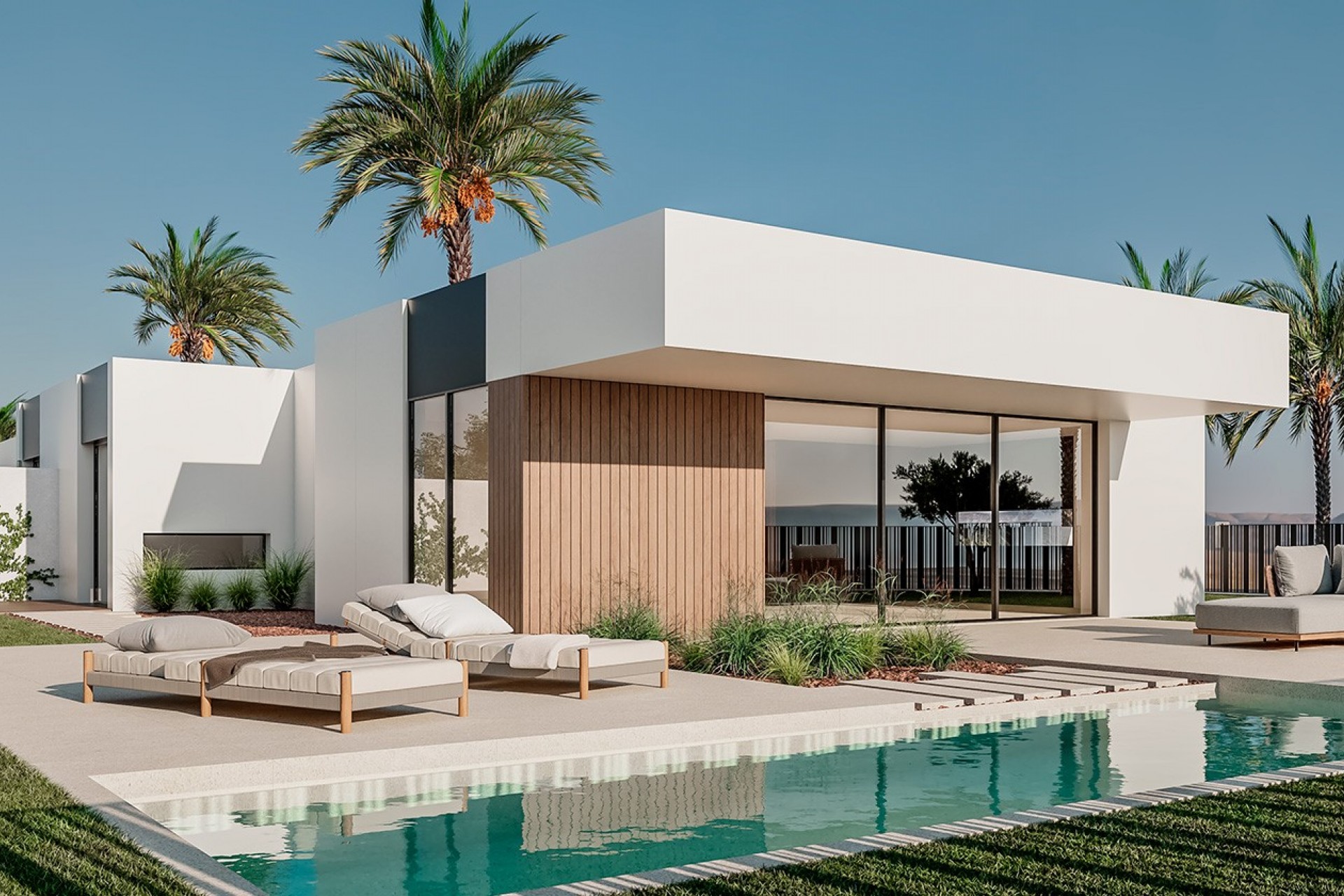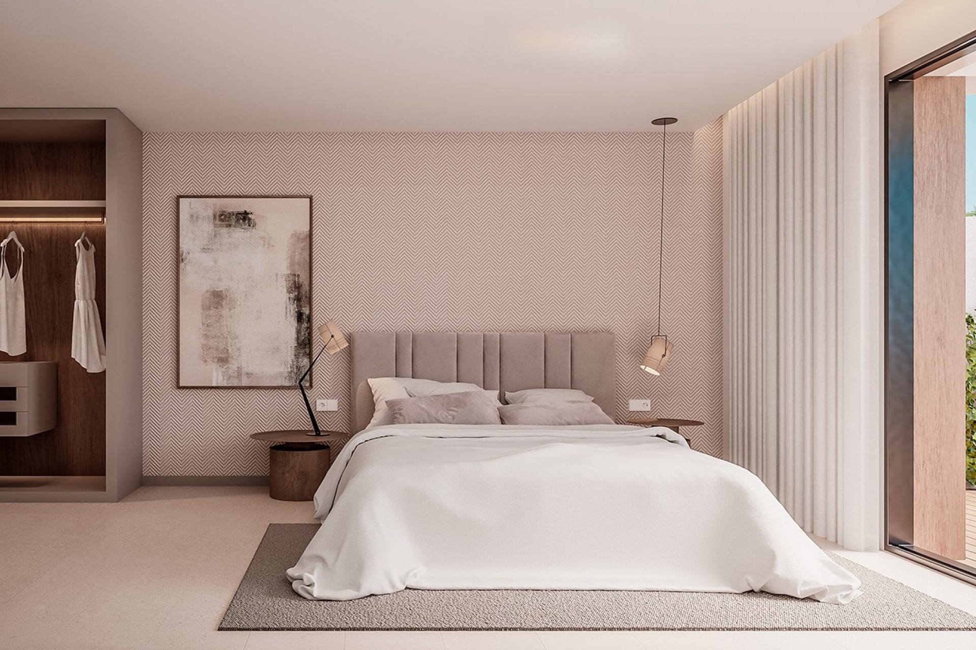 En total, la promoción integra 8 chalets pareados de diseño escultórico, 2 chalets pareados de carácter sobrio y rotundo, y 4 villas independientes de mayor amplitud y privacidad. Cada residencia ha sido concebida con un cuidado especial en el equilibrio de la luz, la proporción y la integración entre interior y exterior, creando espacios abiertos, luminosos y perfectamente conectados con el entorno.