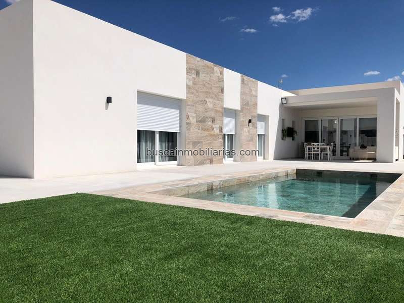 Esta villa sobre plano ofrece un diseño moderno con una superficie construida de 148 m², tres dormitorios, dos baños y una luminosa cocina abierta con salón. La distribución es funcional y está diseñada para una vida cómoda durante todo el año. El precio incluye piscina privada y la casa se puede personalizar según sus necesidades. La villa se construirá en una parcela de 10.000 m², que no está incluida en el precio base. Ofrecemos una amplia selección de más de 150 parcelas legales en diversas zonas rurales. Los precios de las parcelas y el coste final pueden variar según la ubicación y las características elegidas. Este tipo de obra nueva es ideal para quienes buscan espacio, privacidad y flexibilidad, a la vez que se encuentran cerca de pueblos como Pinoso, La Romana o Monóvar. Estas zonas son conocidas por sus paisajes, viñedos y su encanto tradicional español, a la vez que se mantienen cerca de la costa y del aeropuerto de Alicante. Perfectas para vivir a tiempo completo o como refugio vacacional. Disponemos de una amplia cartera de propiedades en la Costa Blanca y la Costa Cálida, especializándonos en fincas rústicas, villas, fincas, terrenos edificables y opciones de diseño y construcción en las regiones de Alicante y Murcia, con especial énfasis en Elda, Monóvar, Pinoso, Sax, Villena, Aspe, Fortuna, Albacete y muchas otras zonas de los alrededores. Llevamos establecidos desde 2004 y nuestro equipo cuenta con décadas de experiencia para ayudarle a encontrar y asegurar la casa de sus sueños. Le acompañamos en cada paso del proceso para garantizar que su compra en España sea segura y sin complicaciones. No estamos aquí para venderle una propiedad, sino para ayudarle a hacer realidad su sueño y encontrar la propiedad perfecta para usted. Con nosotros, está en las mejores manos. Contáctenos ahora para hablar sin compromiso sobre cómo usted también puede hacer realidad sus sueños.