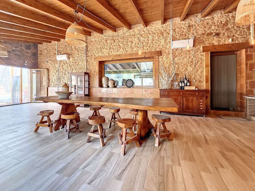 Se puede acceder al enorme espacio junto a la sala de estar desde la casa principal o mediante una entrada independiente y es perfecto para el entretenimiento. Dispone de una gran chimenea, útil para hacer paellas familiares, un horno de leña para pizzas y una zona de barra. Este espacio también está equipado con unidades de aire acondicionado. Desde esta sala se accede a la pérgola para disfrutar de maravillosas cenas al aire libre.