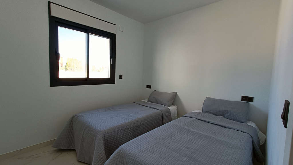 Primera Planta:3 habitaciones, cada una con terraza.2 Baños.1 vestidor.Armarios empotrados.Planta Baja:1 habitación completa en suite.Cocina equipada con armarios, isla con encimeras de Silestone, fregadero, extractor de humos y grifo.Trastero.Amplio salón.Porches cubiertos.Baños: Completos con muebles, duchas, mamparas de vidrio y WC marca Roca.Exteriores y Aceras: Suelo porcelánico.Iluminación: Interior y exterior incluida en el precio.Pulsadores de Persianas: Eléctricos en todas las ventanas.Preinstalación: Alarma y CCTV.Piscina: 8x4 m con terrazas perimetrales de 2m de suelo porcelánico.Aire Acondicionado: Por conductos en toda la casa y el anexo.Personalización: El cliente puede elegir los materiales interiores de suelos, azulejos, muebles de baño y cocina, encimeras de Silestone.