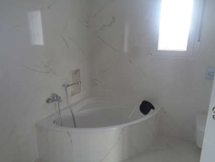 además de una gran selección de azulejos de pared.Entrada de grava más unos metros alrededor de la casa, tanque séptico.Aire acondicionado canalizado preinstalado, cocina estándar, puerta de seguridad, ventanas alemanas oscilobatientes (o correderas si se