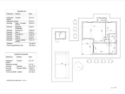 La vivienda cuenta con preinstalación de aire acondicionado por conductos, termo eléctrico de 100 litros y preinstalación de salida de humos para chimenea. También dispone de videoportero con pantalla, tomas de TV y datos en dormitorios, salón y pérgola, y preinstalación para iluminación exterior.