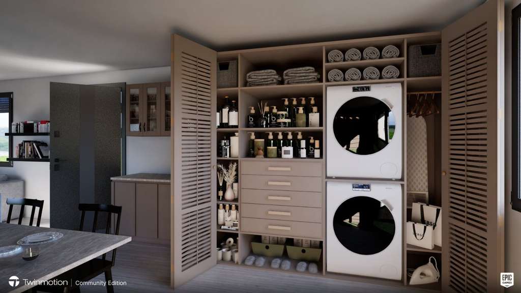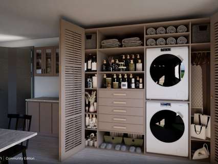 La cocina está equipada con muebles altos y bajos, y la encimera es de "Silestone" o material similar. Se instalará un fregadero de acero inoxidable, junto con las preparaciones para la lavadora y la secadora.