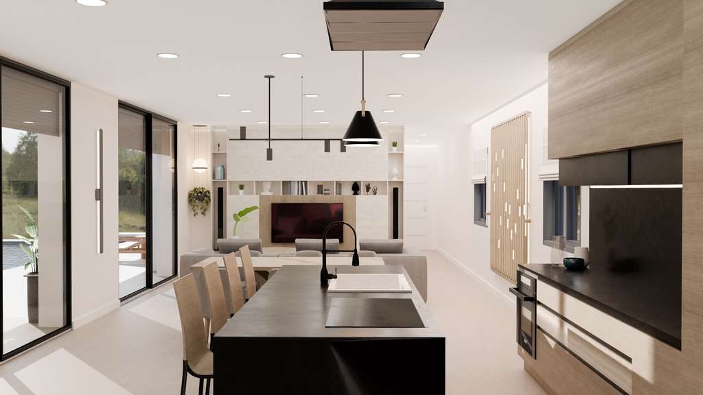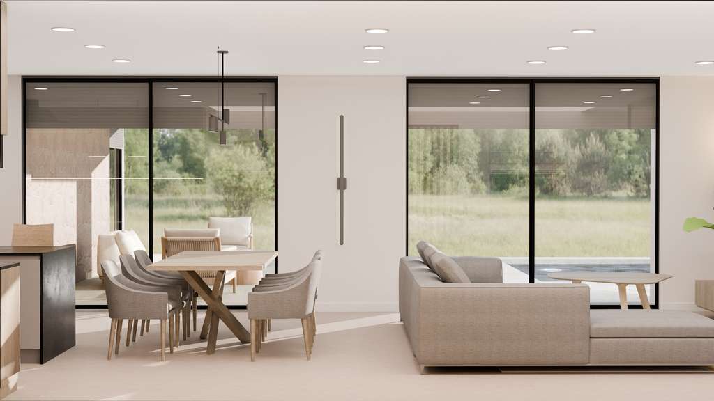 Las villas se sitúan en parcelas de 15.658 m²(no incluido), de las cuales se vallan 3.000 m² para ofrecer un entorno privado y de fácil mantenimiento. Los exteriores destacan por su diseño moderno y funcional, con una puerta corredera motorizada que facilita el acceso. Cada vivienda cuenta con una piscina privada, ideal para disfrutar del clima mediterráneo, y una instalación de paneles solares que asegura una alta eficiencia energética con etiqueta AA. Los espacios exteriores se completan con una superficie de grava de 1.000 m² alrededor de la casa, creando un entorno limpio y ordenado.
