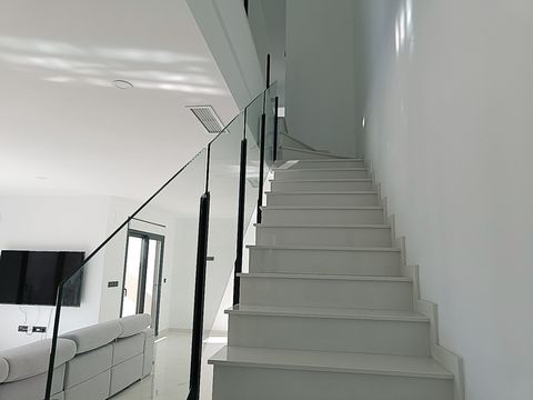 Primera Planta:3 habitaciones, cada una con terraza.2 Baños.1 vestidor.Armarios empotrados.Planta Baja:1 habitación completa en suite.Cocina equipada con armarios, isla con encimeras de Silestone, fregadero, extractor de humos y grifo.Trastero.Amplio salón.Porches cubiertos.Baños: Completos con muebles, duchas, mamparas de vidrio y WC marca Roca.Exteriores y Aceras: Suelo porcelánico.Iluminación: Interior y exterior incluida en el precio.Pulsadores de Persianas: Eléctricos en todas las ventanas.Preinstalación: Alarma y CCTV.Piscina: 8x4 m con terrazas perimetrales de 2m de suelo porcelánico.Aire Acondicionado: Por conductos en toda la casa y el anexo.Personalización: El cliente puede elegir los materiales interiores de suelos, azulejos, muebles de baño y cocina, encimeras de Silestone.